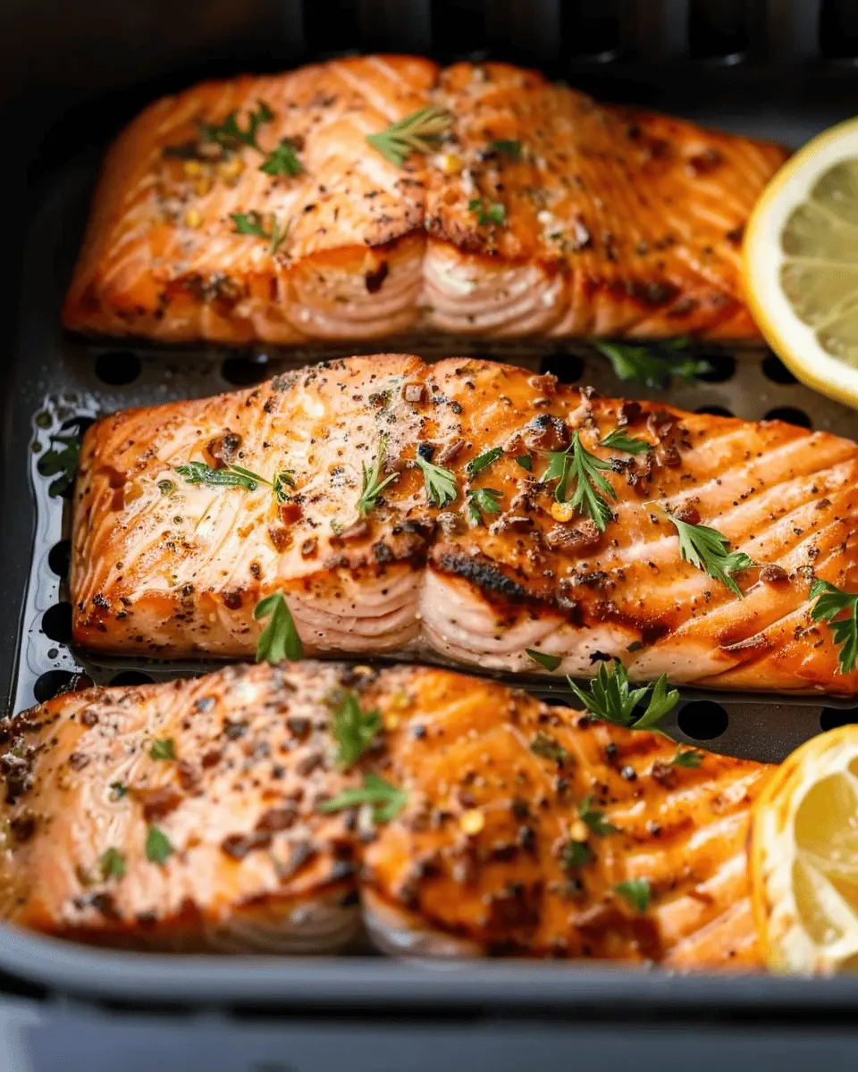 Looking to brighten up your dinner? This lemon herb air fryer salmon is the perfect solution. The fresh flavors of lemon and herbs elevate the dish, making it a family favorite. To make this variation, simply season your salmon fillets with fresh lemon juice, a mix of chopped parsley, dill, and garlic powder. Here’s how to prepare it:
