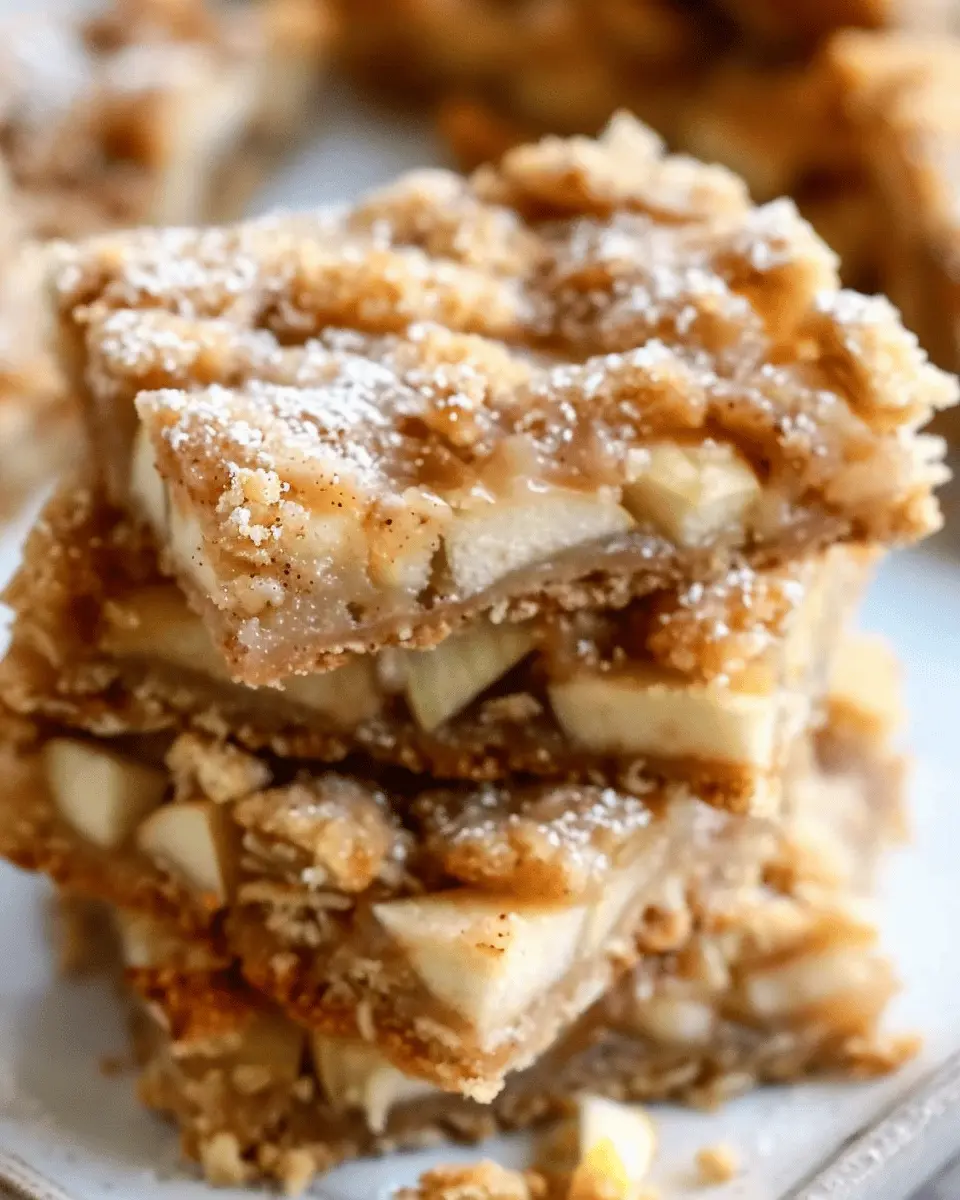 When it comes to presentation, think beyond the usual squares. Consider cutting your apple bars into fun shapes using cookie cutters to make them more appealing, especially for gatherings or family events. Serve them on a rustic wooden board, garnished with some fresh apples or a sprinkle of powdered sugar for an elegant touch.