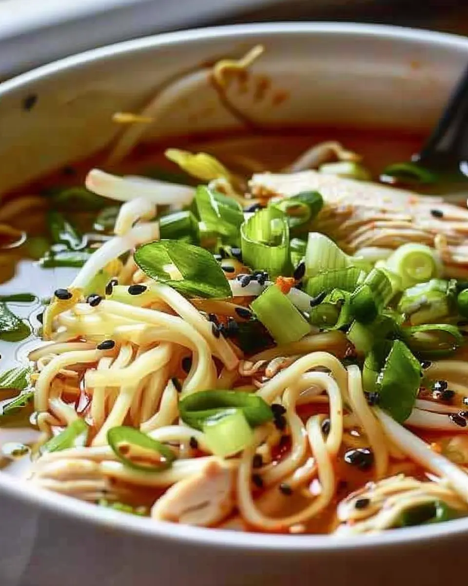 Elevate your aromatic ginger scallion chicken noodle soup with these optional garnishes: