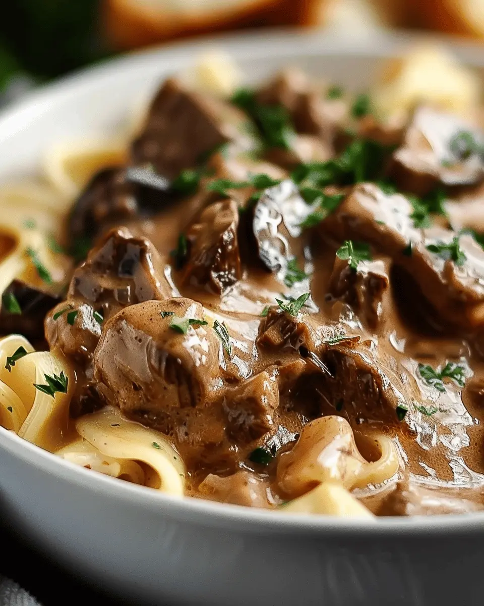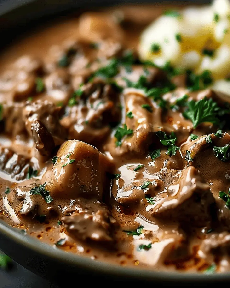 Finally, it’s time to serve your delicious Beef Stroganoff Gordon Ramsay! Pair it with egg noodles, rice, or a bed of mashed potatoes for a complete meal. Don’t forget to garnish with fresh parsley for a pop of color!