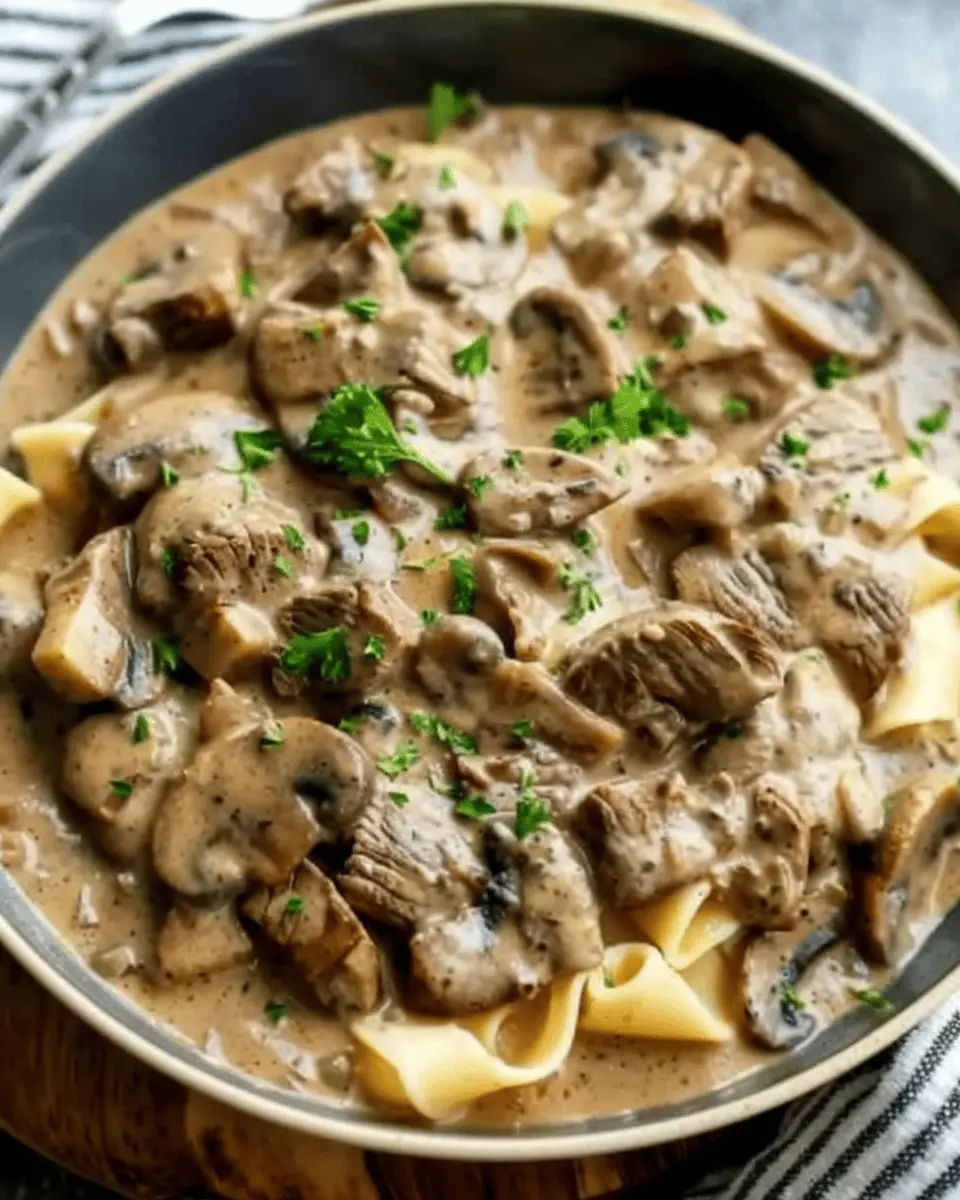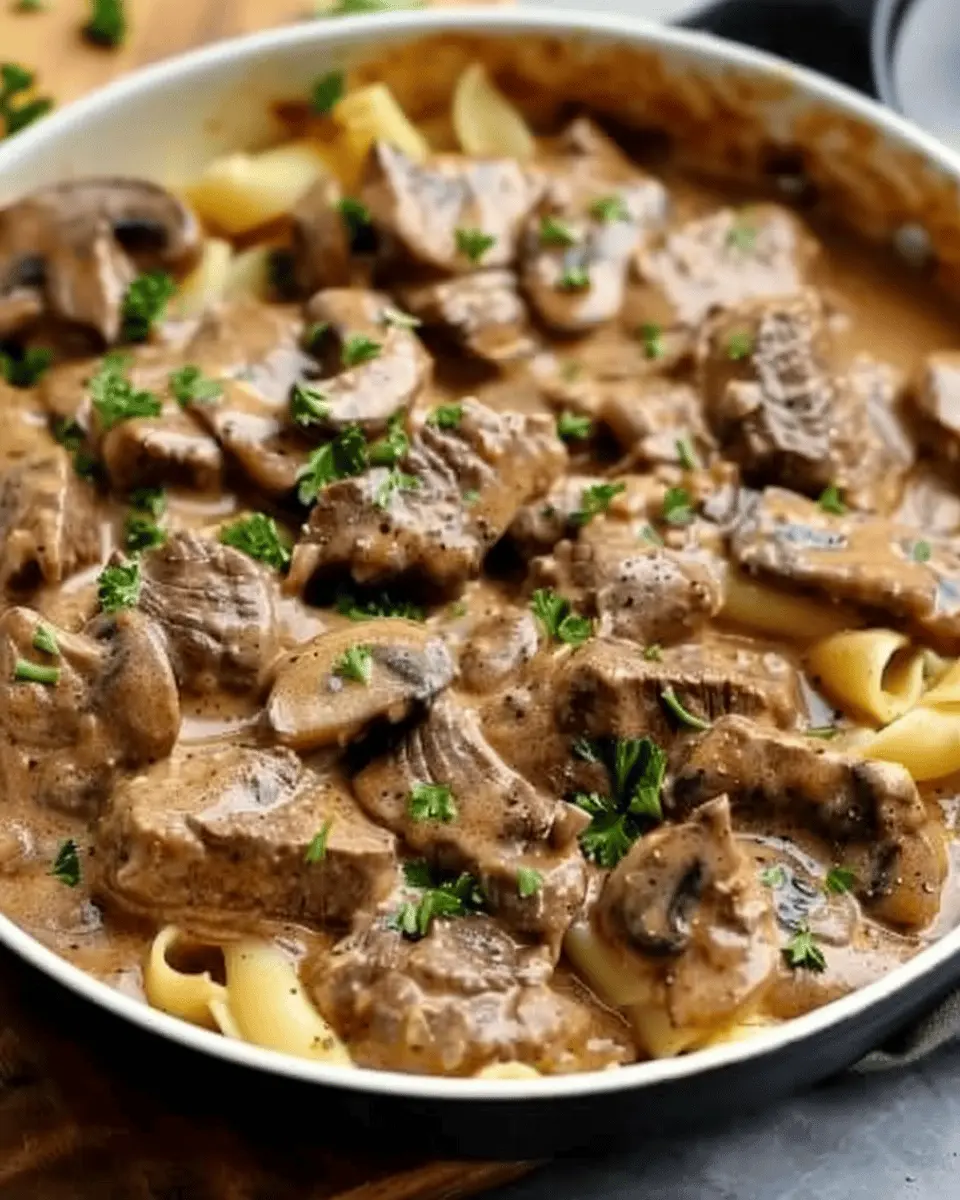 Serve your beef stroganoff over buttered egg noodles or fluffy rice for a comforting meal that feels gourmet. Enjoy this dish not just as food, but as an experience to savor and share.