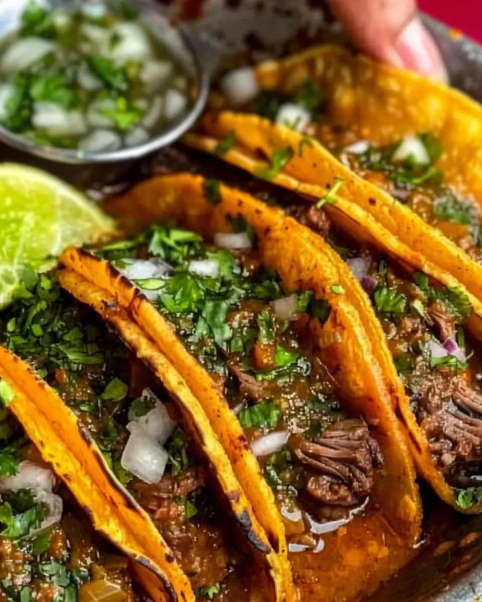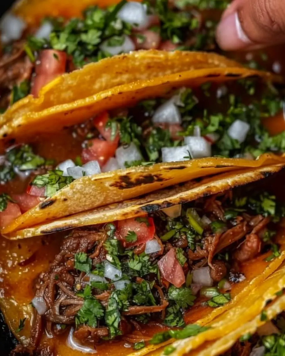 Delicious and savory birria tacos made at home with rich flavors and tender meat.