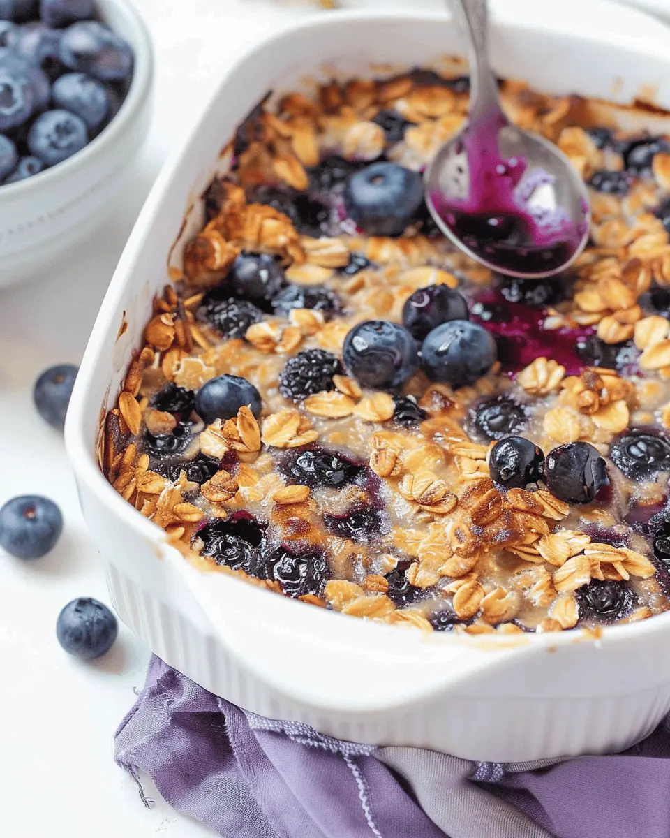 Absolutely! One of the joys of baked oatmeal is its versatility. Feel free to swap out blueberries for raspberries, strawberries, or blackberries. Each type of berry brings its unique flavor profile—raspberries offer a tart kick, while strawberries add a touch of sweetness. Just keep in mind that the baking time may slightly vary, so keep an eye on the dish as it cooks!