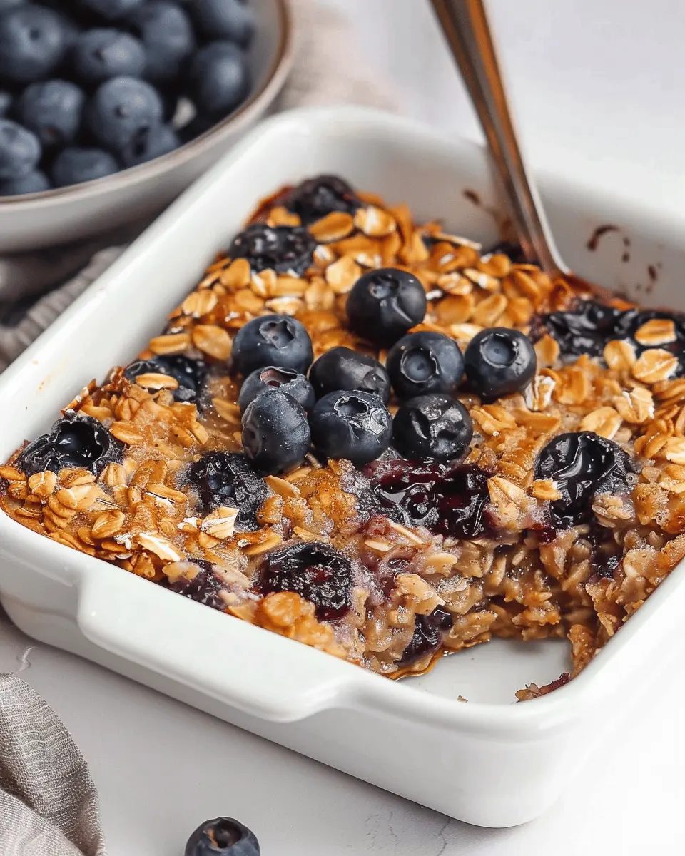 Reheating your blueberry baked oatmeal is super simple! You can do it in the microwave—just pop a serving in for about 30 seconds to 1 minute, depending on your microwave’s power. Alternatively, if you prefer a crispier texture, toss it in the oven at 350°F for about 10–15 minutes. Add a splash of almond milk or water before reheating to help retain its moisture.