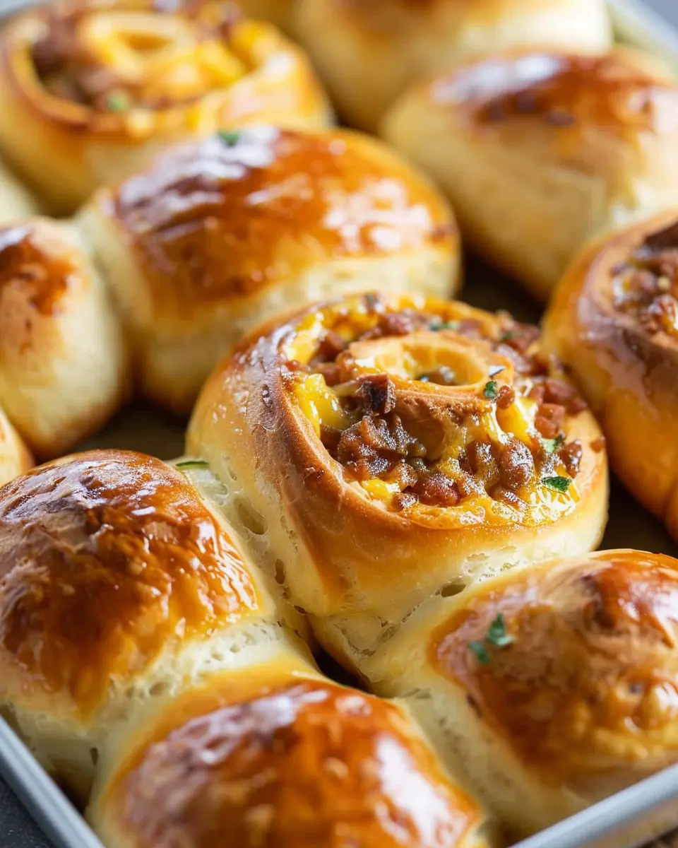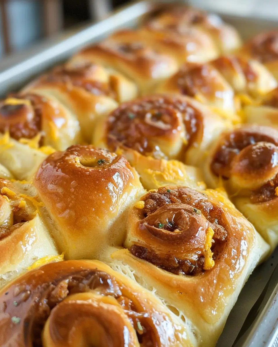Pop your filled pan into the preheated oven and bake for about 12-15 minutes, or until the rolls are golden brown and the cheese is bubbly. The aroma wafting through your kitchen will tempt your taste buds, making it hard to wait!