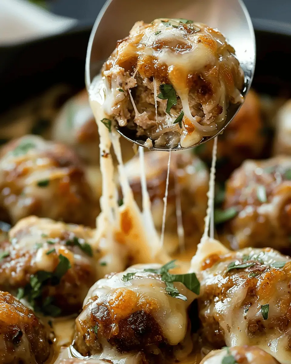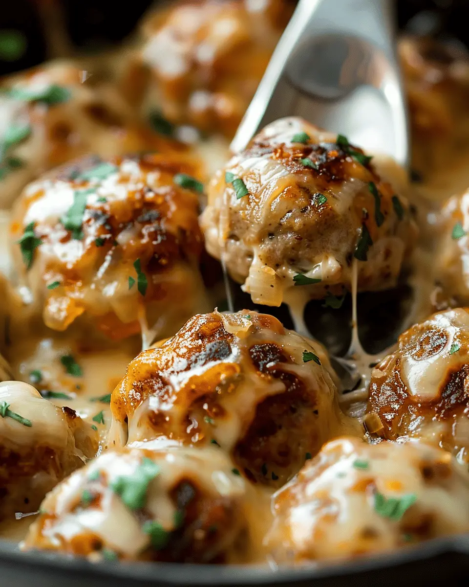 The secret behind the allure of these cheesy French onion meatballs lies in a few key elements: