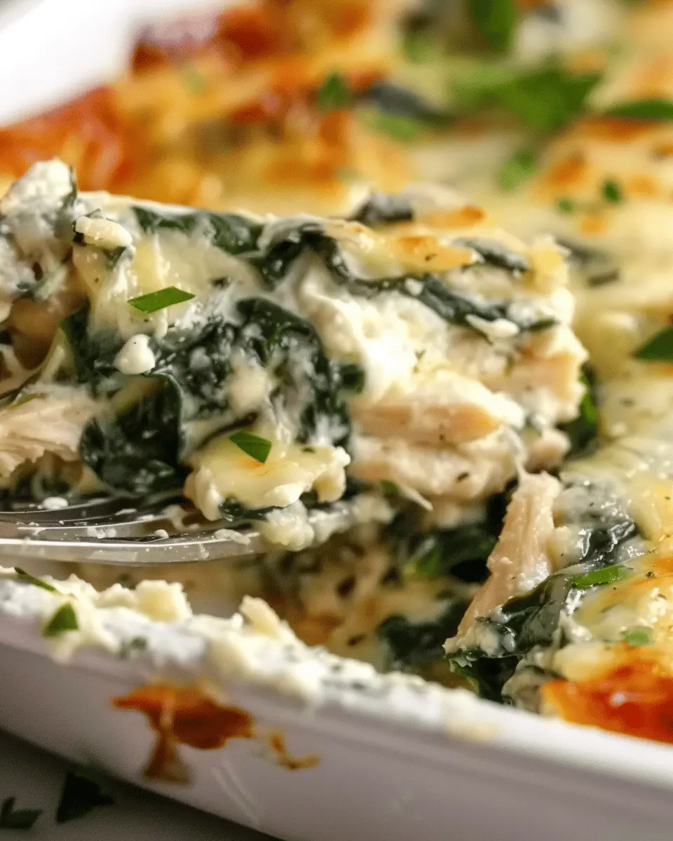 Absolutely! Preparing your Chicken and Spinach Casserole in advance is a great time-saver. You can assemble the casserole, cover it tightly, and refrigerate it for up to 24 hours before baking. Just be sure to add a few extra minutes to the baking time if you’re pulling it straight from the fridge. For even longer storage, consider freezing it. Simply prep the casserole, wrap it well in plastic wrap and aluminum foil, and store it in the freezer for up to three months.