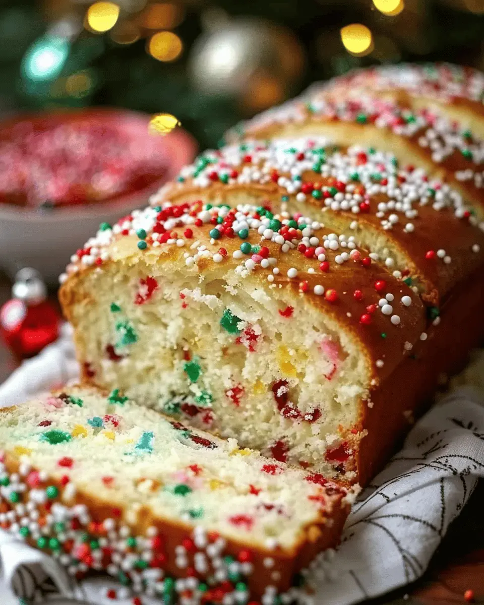 Why not take it a step further? You can even whip up a quick glaze to drizzle over the top, making it a decadent centerpiece for your festive gatherings. This bread is flexible, adaptable, and oh-so-delicious. Did you know that sprinkles evoke feelings of nostalgia and joy, according to food psychologists? It’s no wonder this bread brings such happiness to those who indulge!