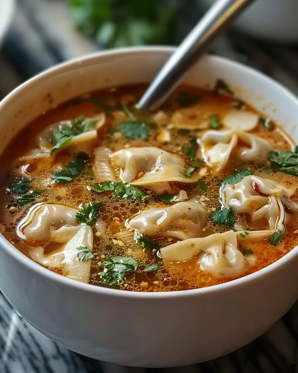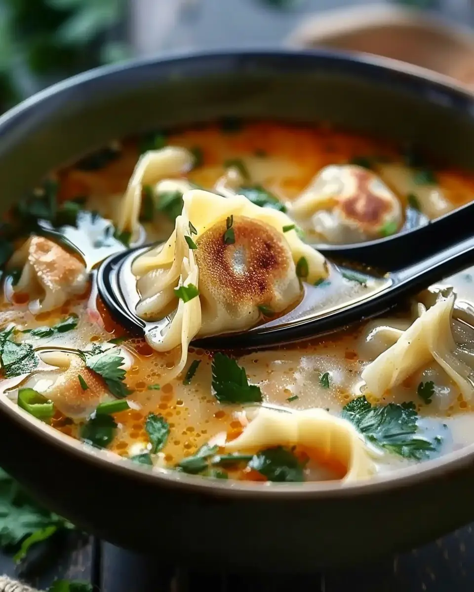 A warming and flavorful take on traditional potstickers, this soup combines a comforting broth with savory dumplings for a complete meal.