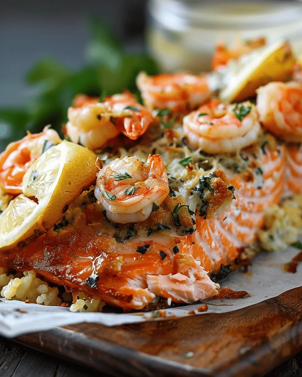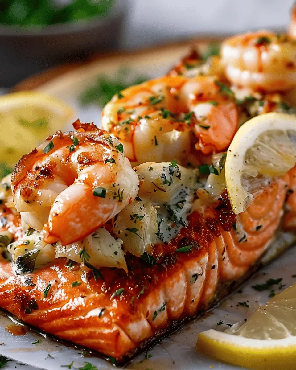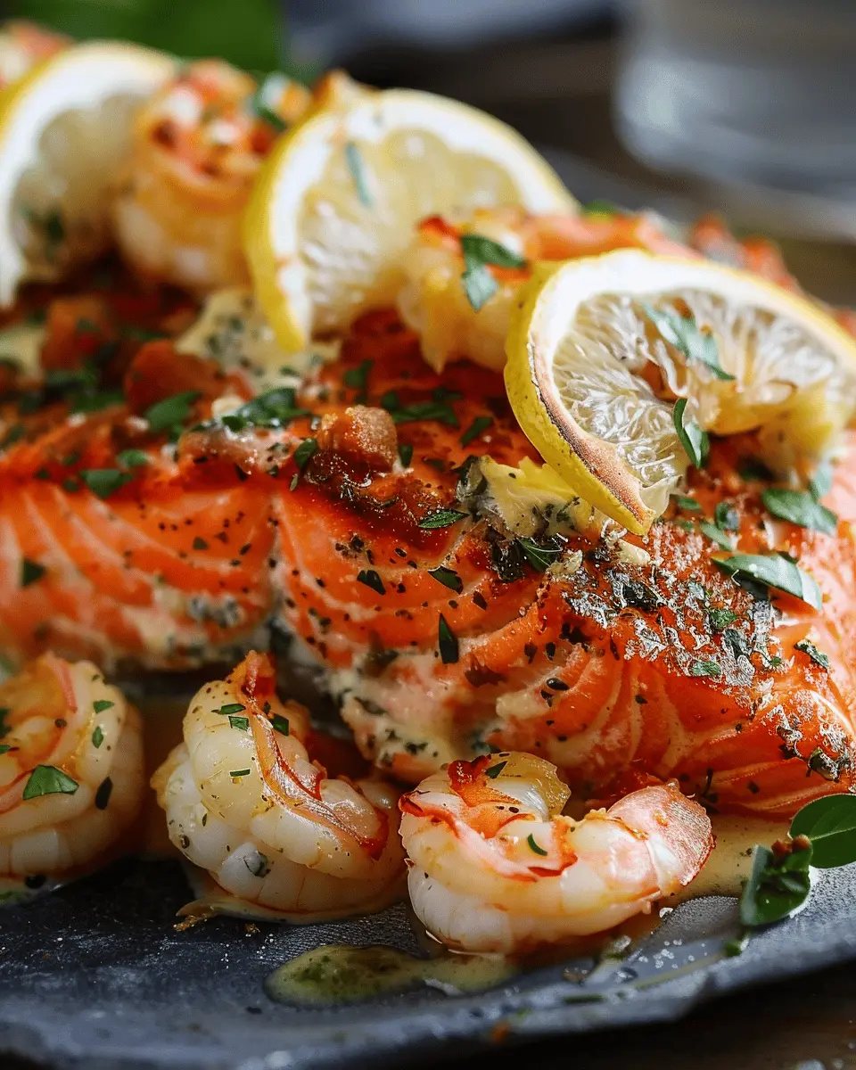 Enjoy a delicious dinner with Crab and Shrimp Stuffed Salmon. This dish combines the freshness of seafood with tender salmon fillets, perfect for any occasion.