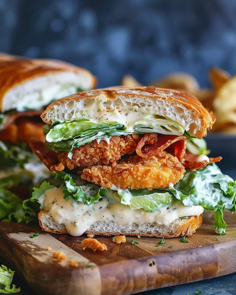 Discover the ultimate Crispy Chicken Caesar Sandwich topped with savory turkey bacon. Perfect for lunch at home or on the go!