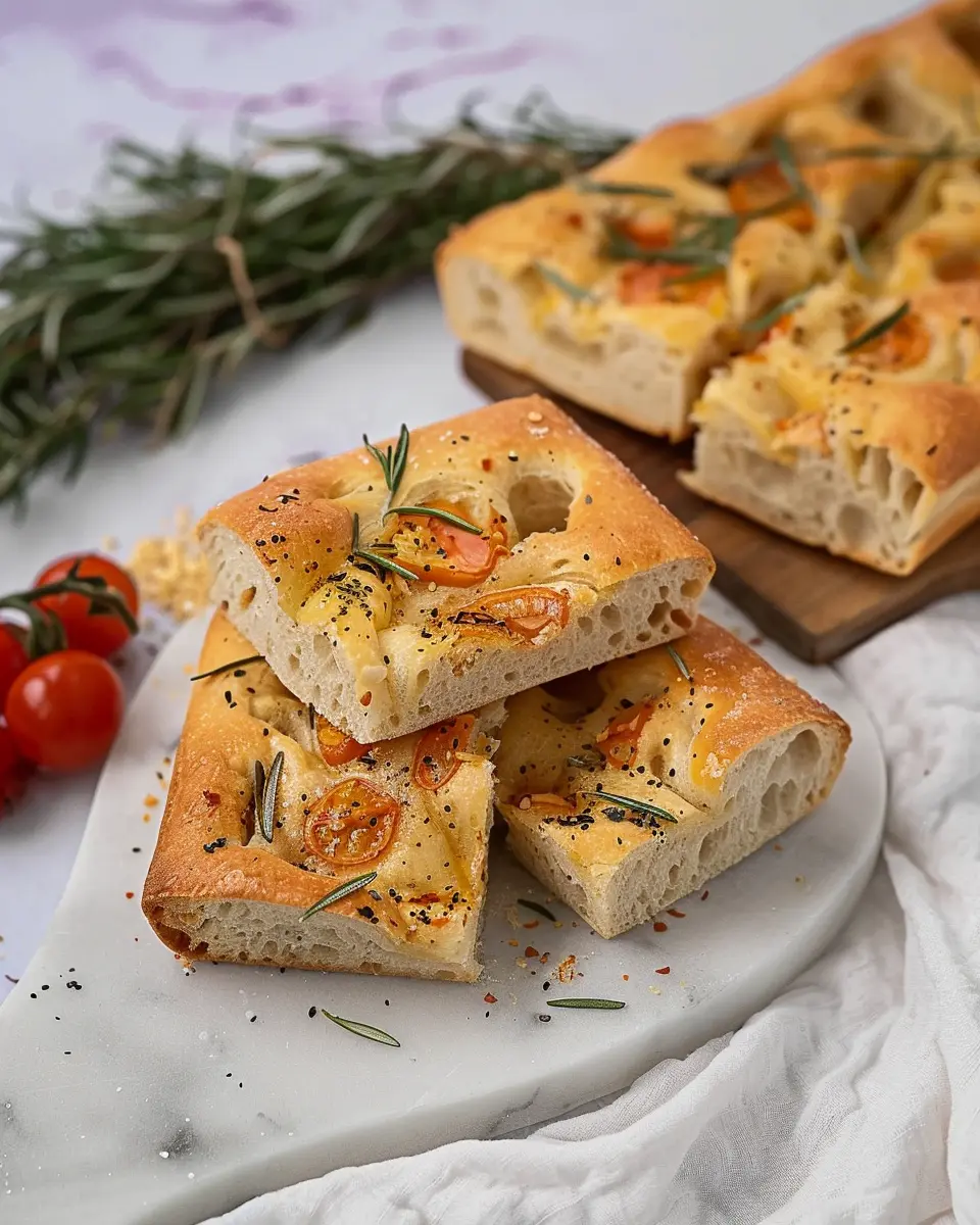 You’ll find that this recipe contains about 5-7 grams of protein per serving. While focaccia isn’t a high-protein dish, you can always pair it with protein-rich toppings like Turkey Bacon or Chicken Ham to create a more balanced meal.