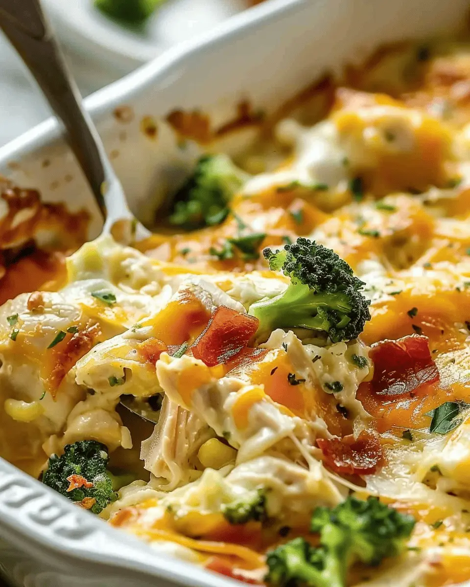 Keeping carbs low? This easy low carb chicken casserole contains around 10–12 grams of net carbs per serving. It’s perfect for anyone following a low-carb diet, helping you enjoy a hearty meal without worrying about those carb numbers.