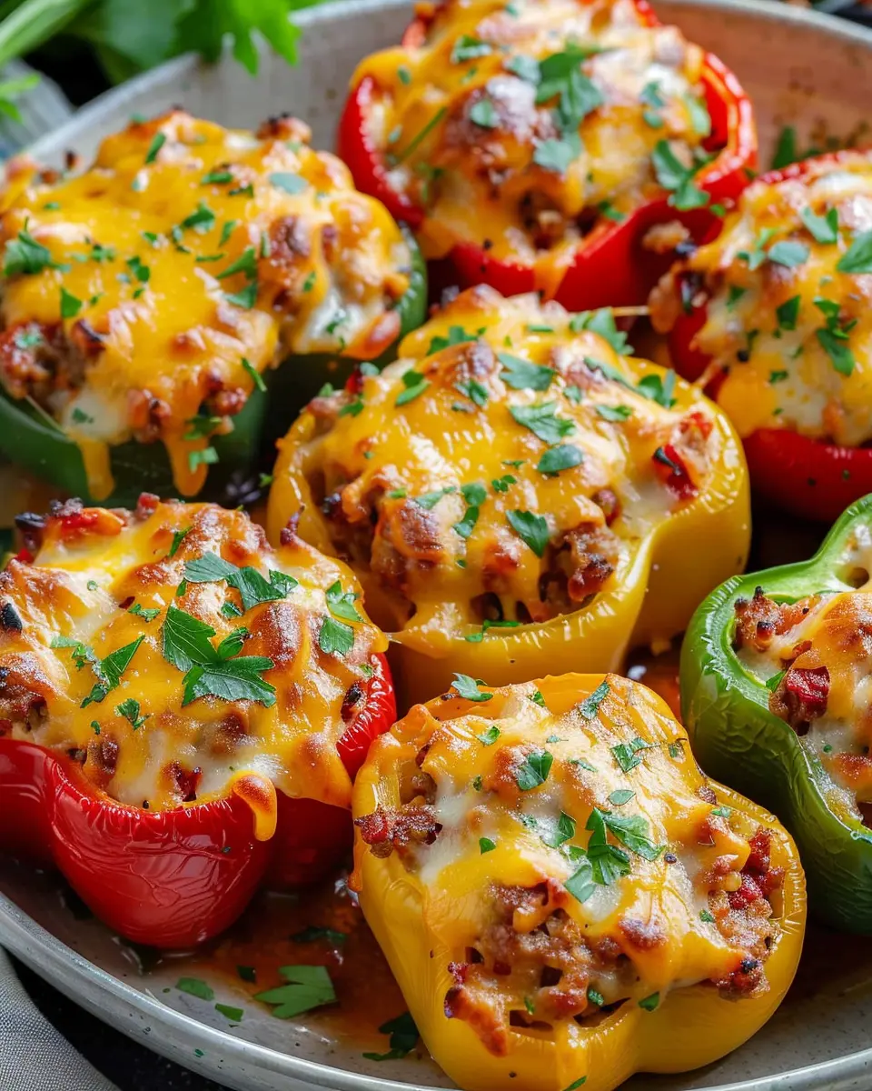 This Easy Stuffed Bell Peppers Recipe combines the delicious flavors of turkey bacon and chicken ham, making it a perfect meal for any occasion.