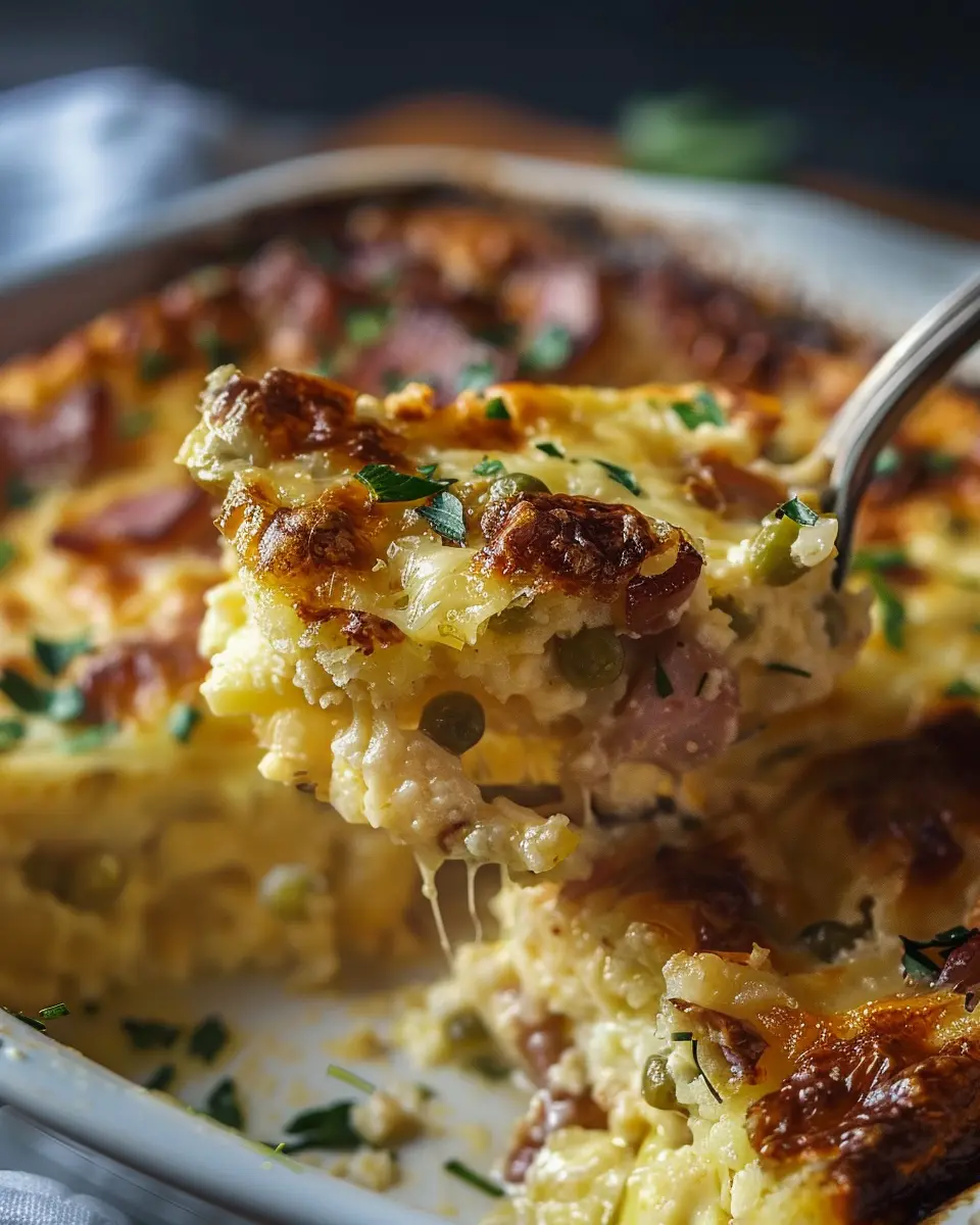 A delightful Farmer’s Casserole featuring turkey bacon and chicken ham, perfect for a family meal.