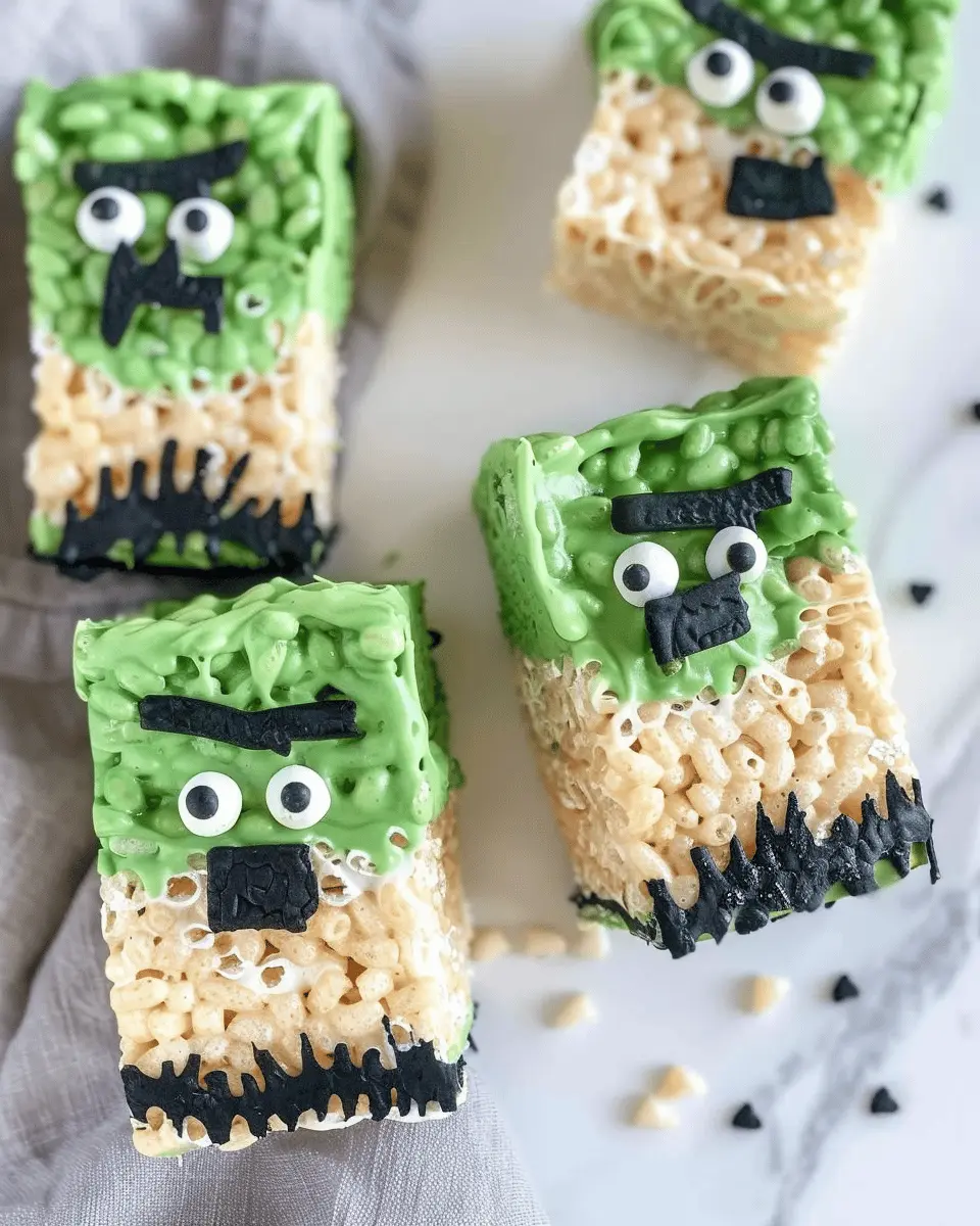 Delight your family with these fun and easy Frankenstein Halloween Rice Krispie Treats, perfect for parties!