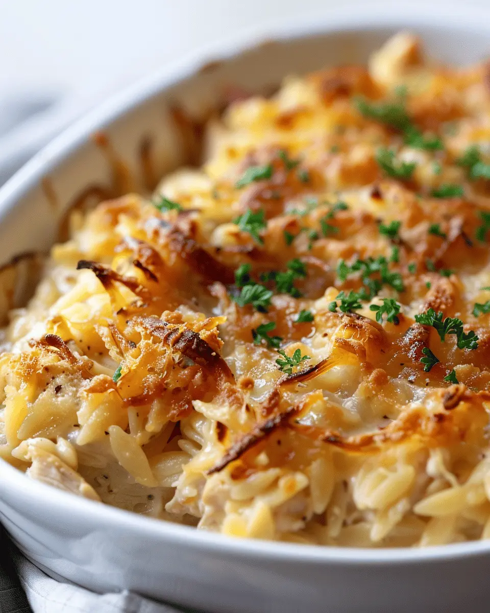 Introduction to French Onion Chicken Orzo Casserole