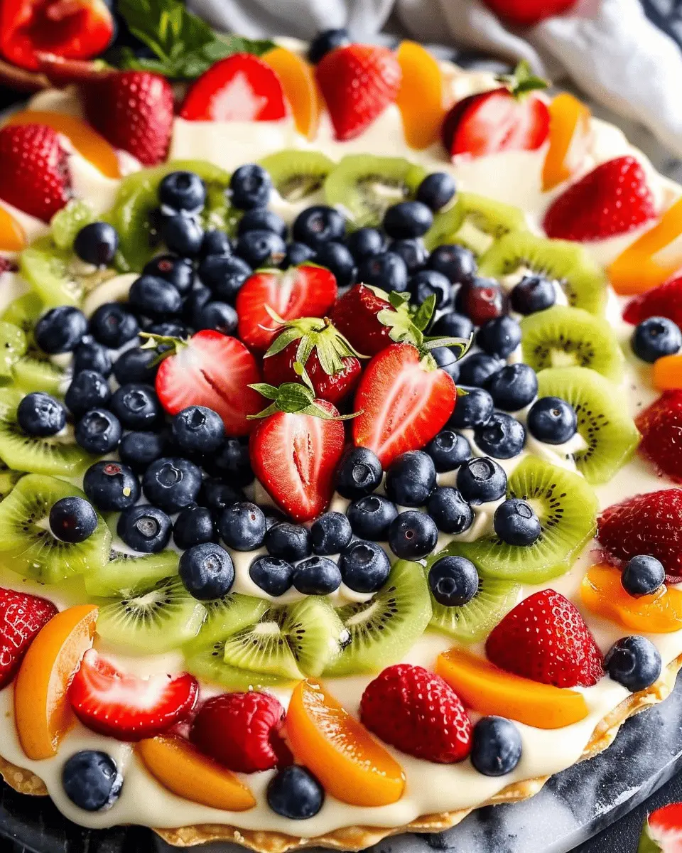 Firstly, let’s talk versatility. This dessert can be customized in countless ways. Whether you’re a fan of tropical fruits like pineapple and mango or prefer the classics like strawberries and blueberries, you can mix and match based on what you have on hand or what’s in season. It’s not just about aesthetics; studies show that colorful plates can enhance your enjoyment of food, making fruit pizza not just delicious but visually exciting as well.