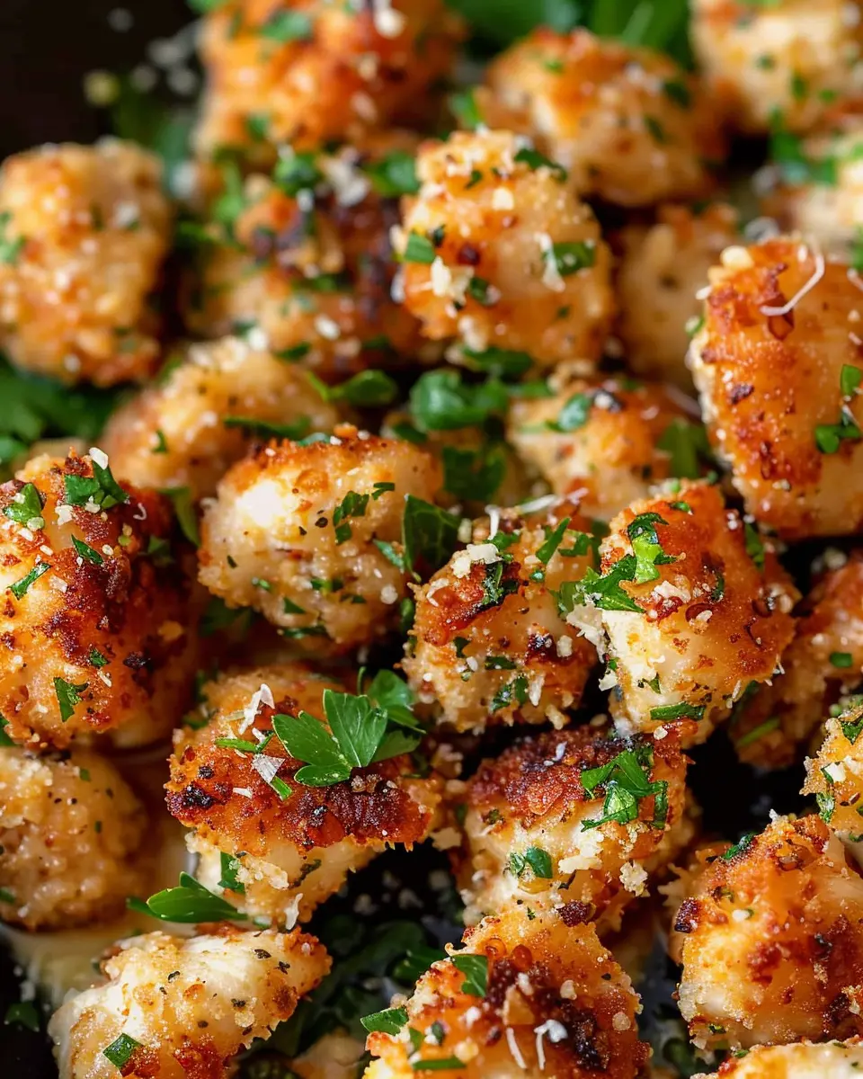 Enjoy these crispy Garlic Parmesan Chicken Bites that are perfect for any party or gathering.
