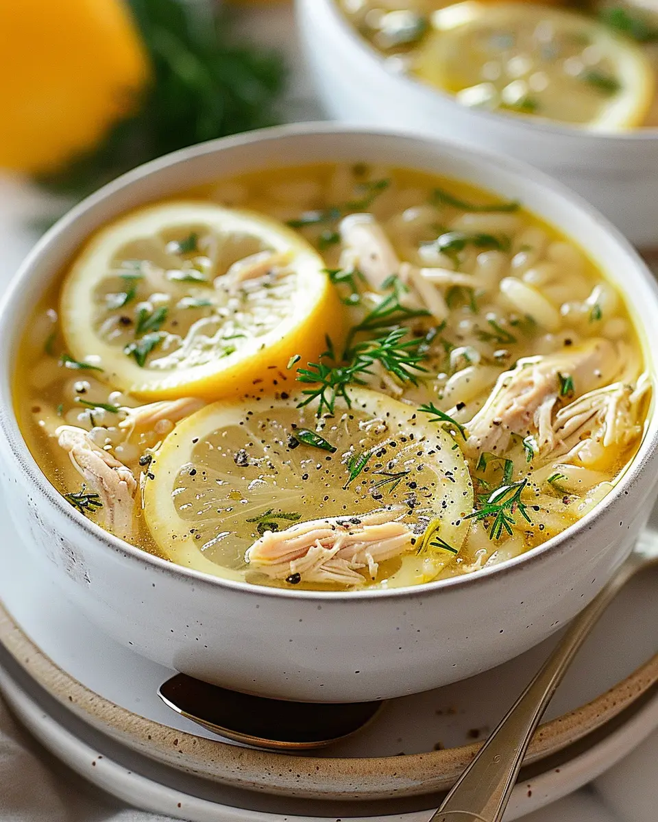 A refreshing and hearty soup that combines the flavors of lemon, chicken, and herbs, perfect for any day of the week.
