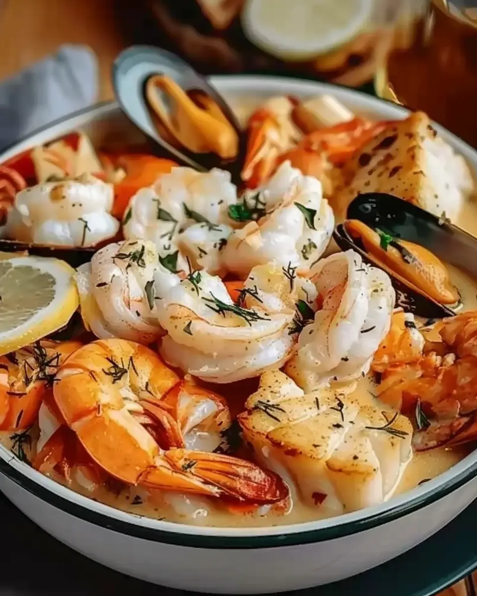 - Fresh seafood: A mix of shrimp, scallops, and fish (cod or haddock work beautifully)