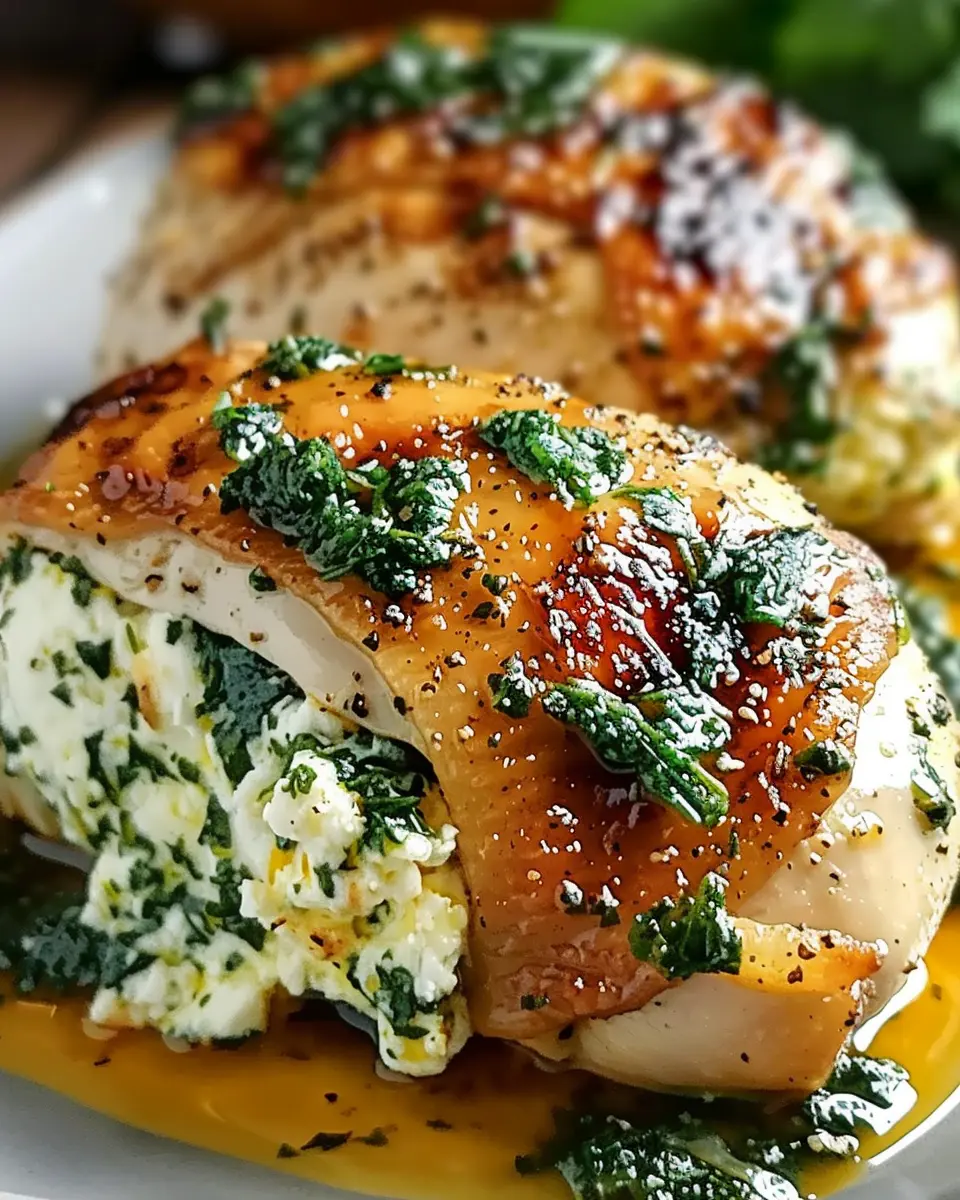 If you love a Mediterranean twist, consider the Spinach-Feta Stuffed Chicken. This rendition combines tender baby spinach with crumbled feta cheese, making it both rich in flavor and nourishing.