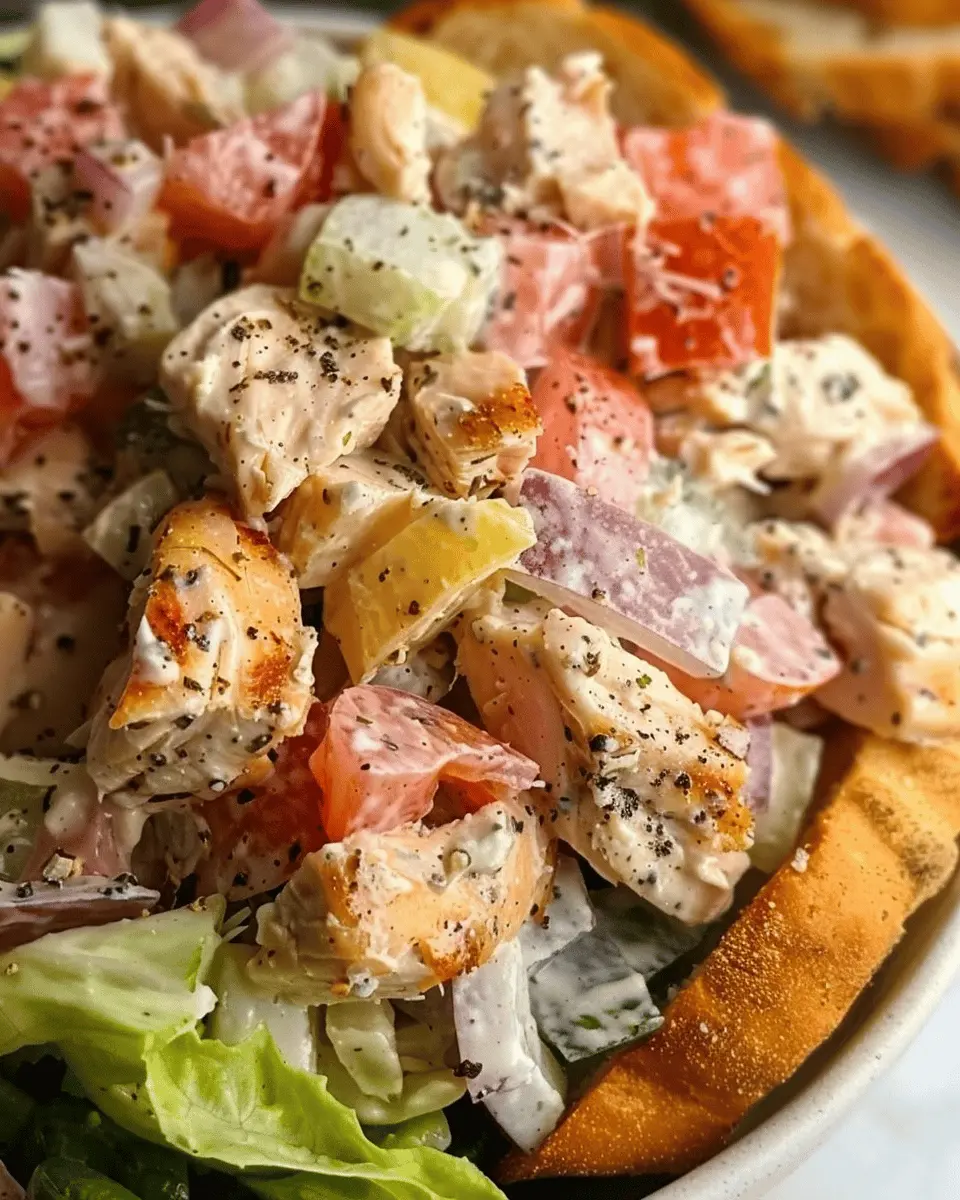 Italian Grinder Chicken Salad with Turkey Bacon and Chicken Ham