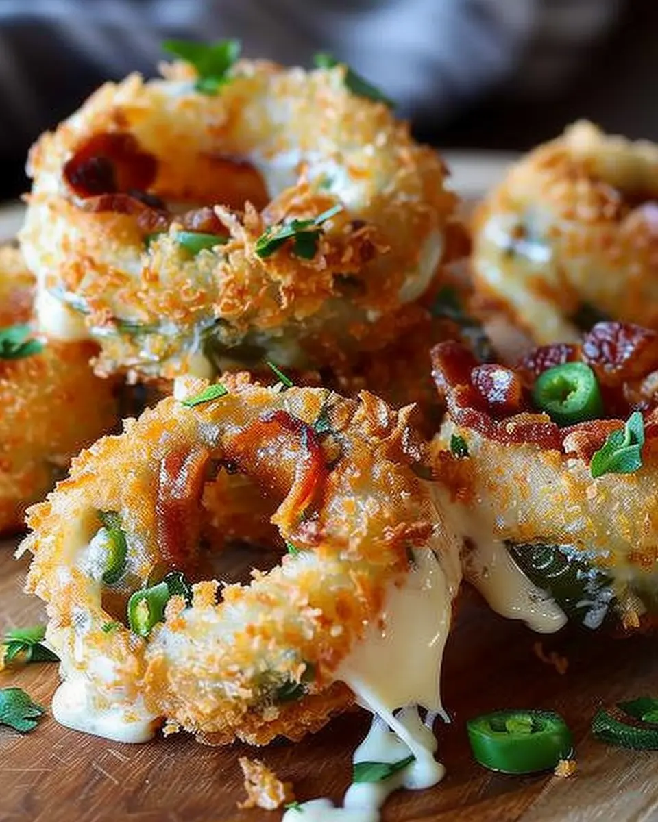 Jalapeño Popper Stuffed Onion Rings: Indulgent Turkey Bacon Delight