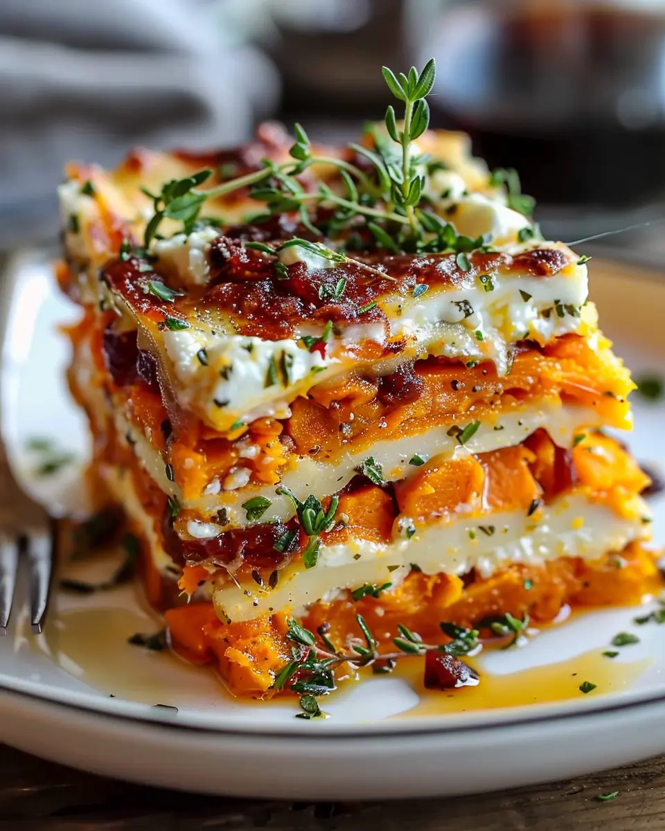 This Layered Sweet Potato Butternut Squash Carrot Lasagna is the ultimate comfort food delight, combining flavors and textures for a satisfying meal.