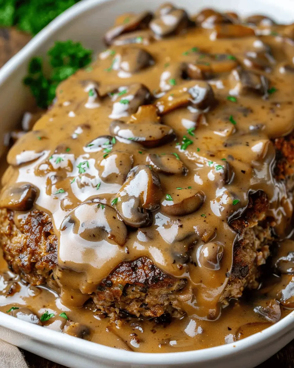 If you’re looking for a quick way to impress guests or just want to treat yourself after a long week, meatloaf with mushroom gravy is your answer. It’s versatile, allowing you to get creative with spices or add-ins like chopped vegetables or herbs. Plus, leftovers are fantastic in sandwiches or on top of a baked potato!