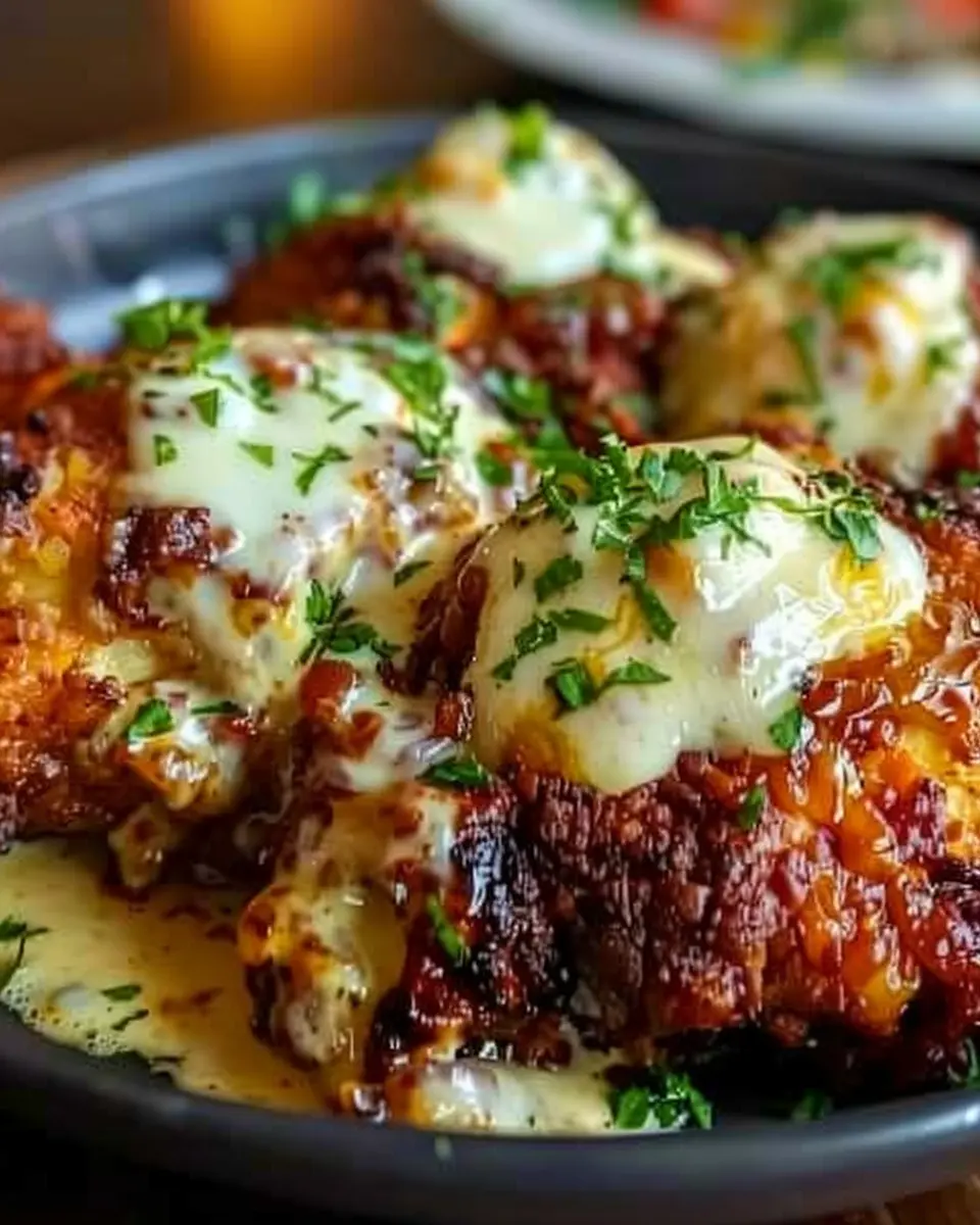 Now comes the gooey goodness—cheese! Sprinkle a generous layer of shredded cheese over the top of the chicken. You can use a combination of cheddar and mozzarella for that melty texture and rich flavor. Once you’ve added the cheese, it’s time to pop the dish into your preheated oven.