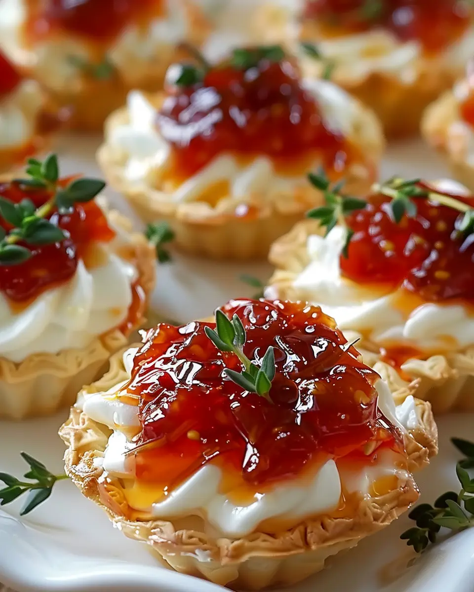 With your quick pepper jelly cream cheese appetizer assembled, it’s time for the moment you’ve been waiting for—baking! Place the tray in the oven and bake for about 10-12 minutes, or until the phyllo shells are golden brown. Keep an eye on them as they bake; those little shells can go from perfect to overdone in the blink of an eye!