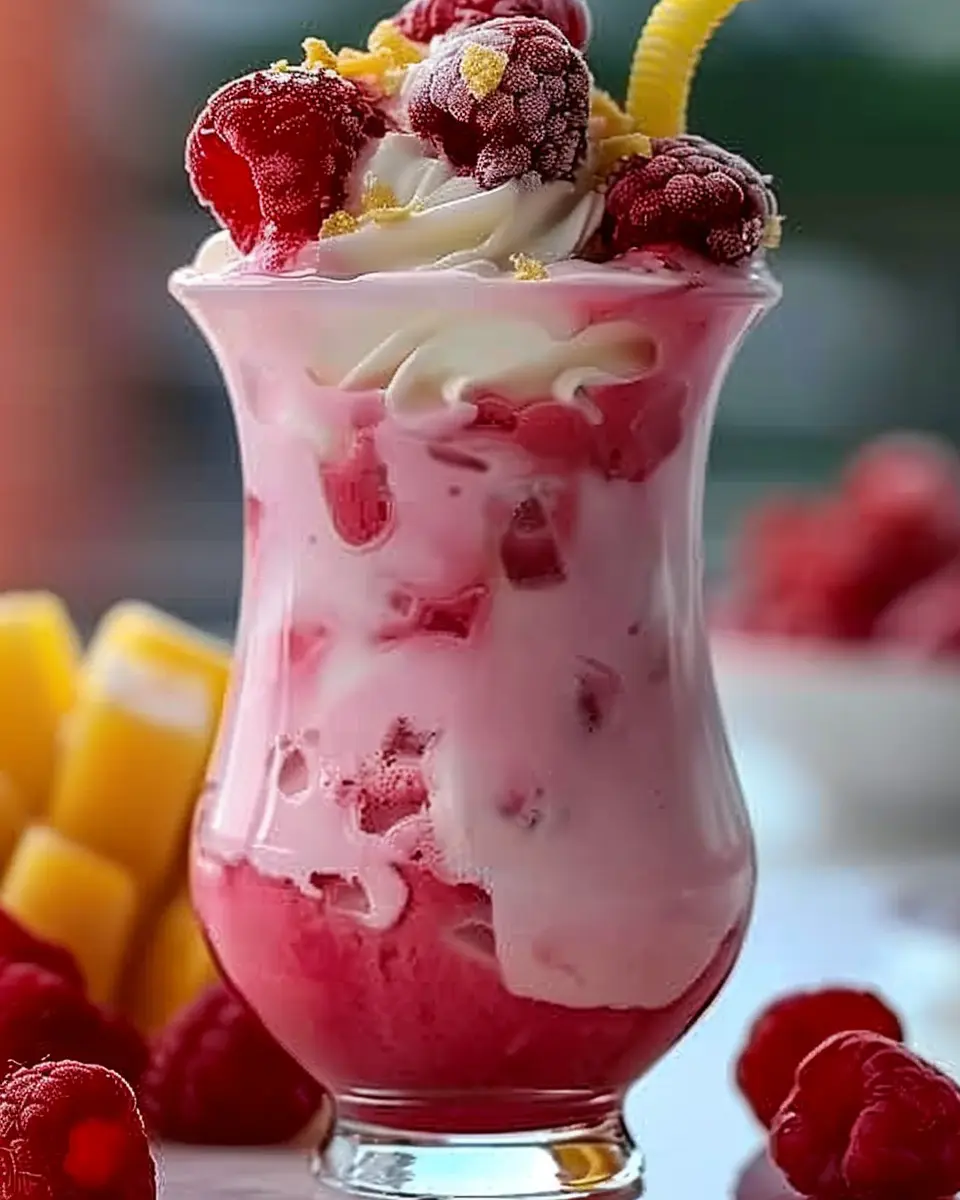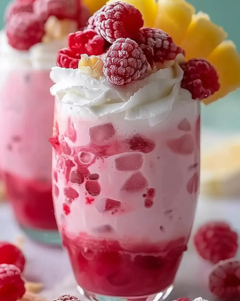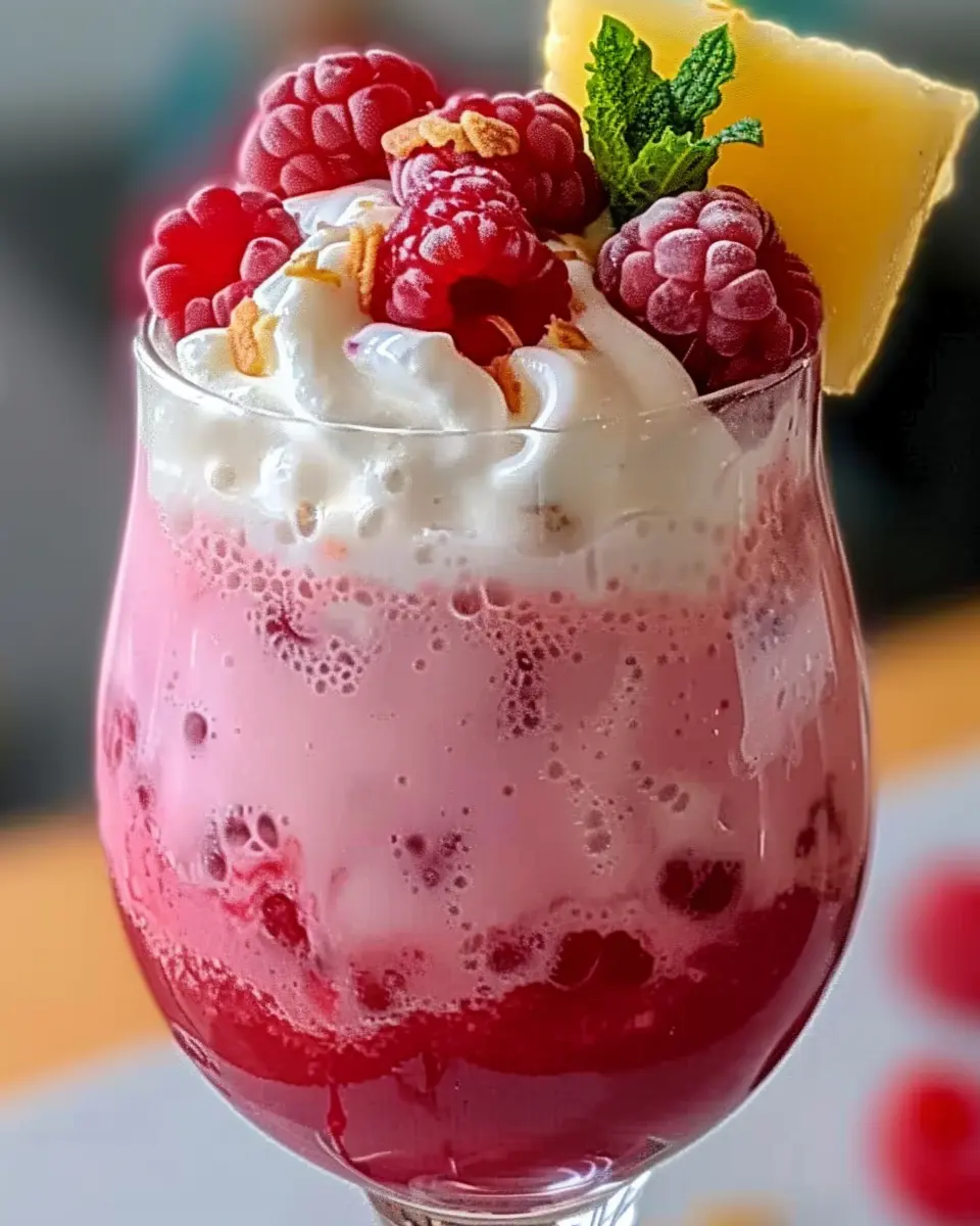 The Raspberry Colada Twist is an absolute showstopper for any poolside gathering. Imagine sipping on this refreshing drink while lounging under the sun, surrounded by friends and laughter. To elevate the experience, serve your Raspberry Colada Twist in vibrant, tall glasses adorned with colorful fruit garnishes. Pineapple slices, fresh raspberries, and a sprig of mint add a pop of color and a fragrant aroma. For an extra touch, set up a fun DIY toppings bar with shredded coconut and whipped coconut cream to let guests customize their drinks.