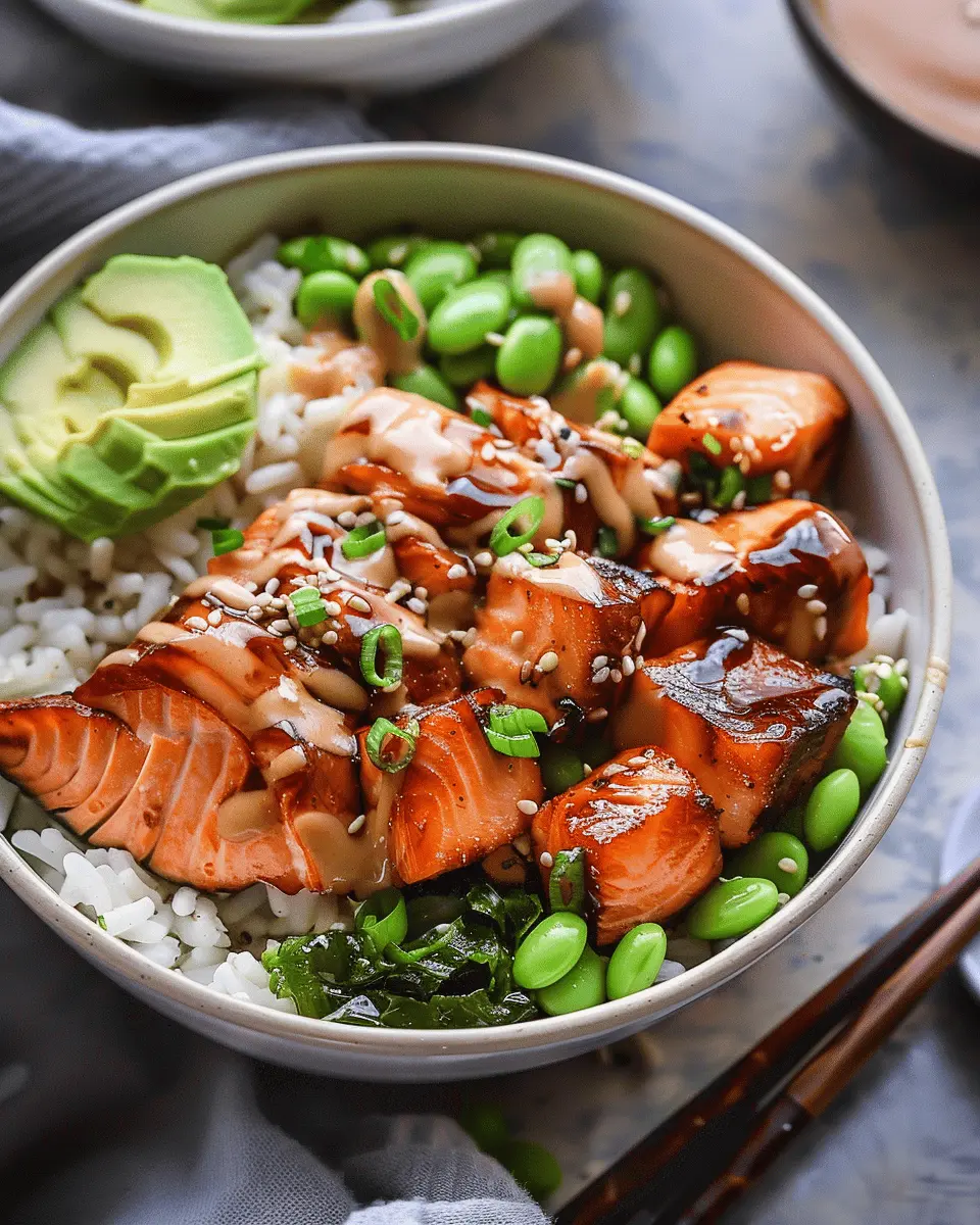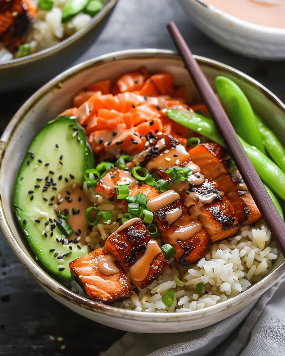 If you’re someone who enjoys a kick in your meals, the spicy salmon teriyaki bowl is the perfect way to elevate your culinary experience! Start with your classic salmon teriyaki base, marinated in the usual soy sauce and mirin, then add a punch by mixing in some sriracha or chili paste into the sauce. This not only enhances the flavor but also adds a lovely vibrant hue to your dish.