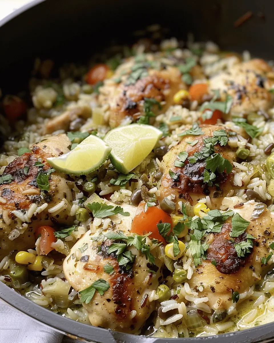 A delicious and simple recipe for a one-pan meal featuring chicken, rice, and a flavorful salsa verde. Perfect for busy weeknights!