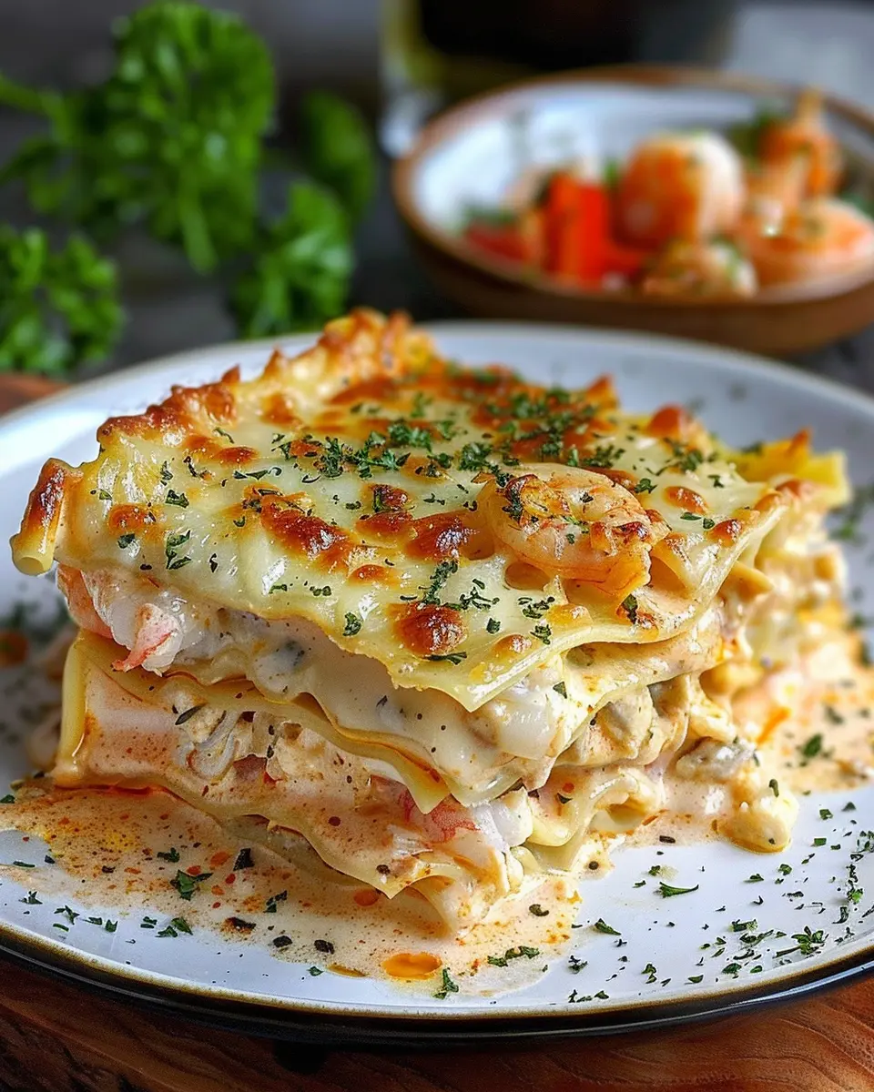 Enjoy a rich and flavorful shrimp crab lasagna that’s perfect for any occasion.