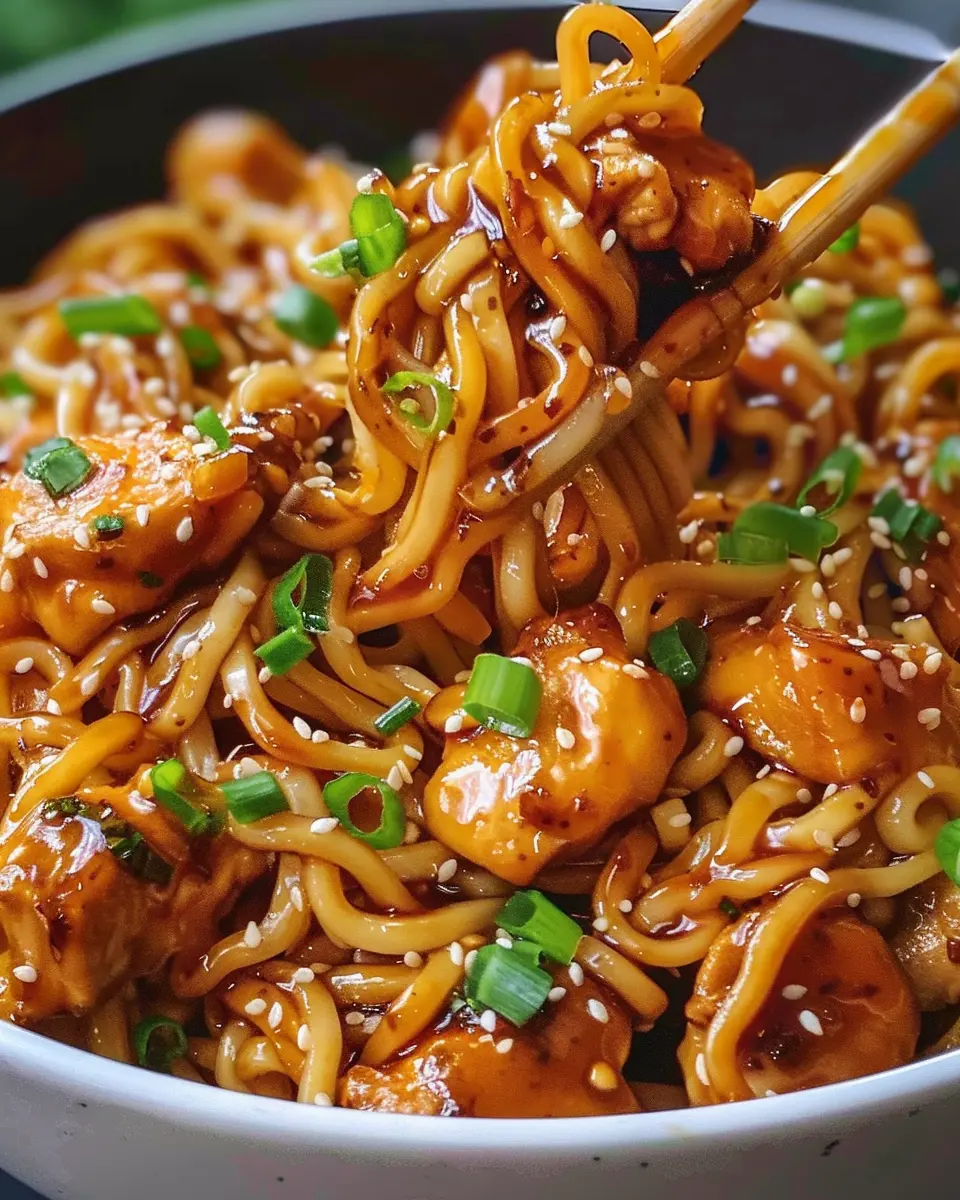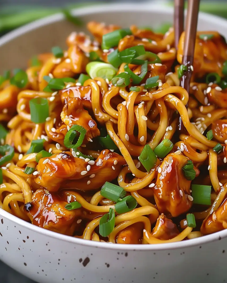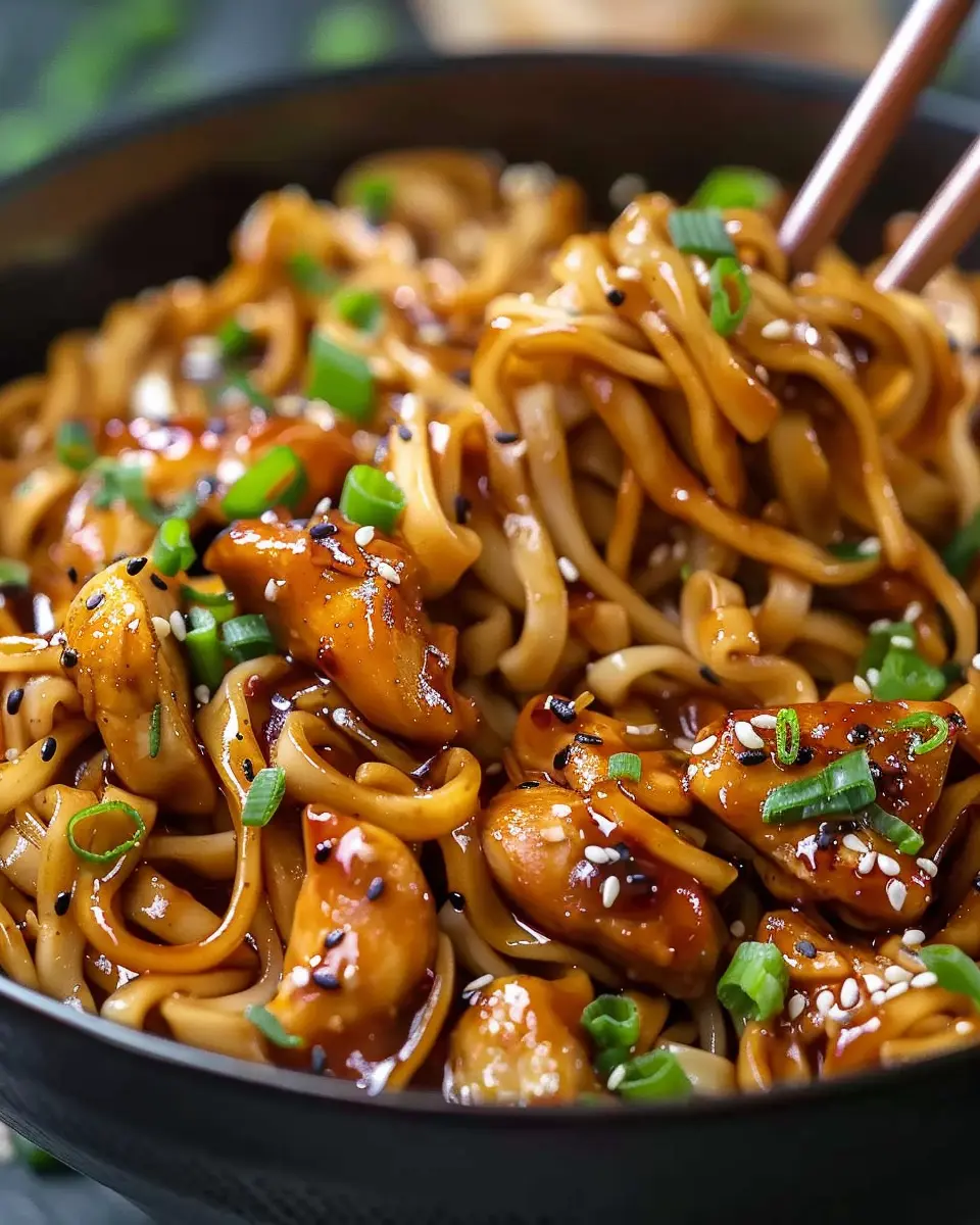 Once you’ve combined these ingredients, let them sit for a few minutes to allow the flavors to meld. This sauce will not only coat the chicken beautifully but also infuse every bite of the noodles with sweetness and depth.