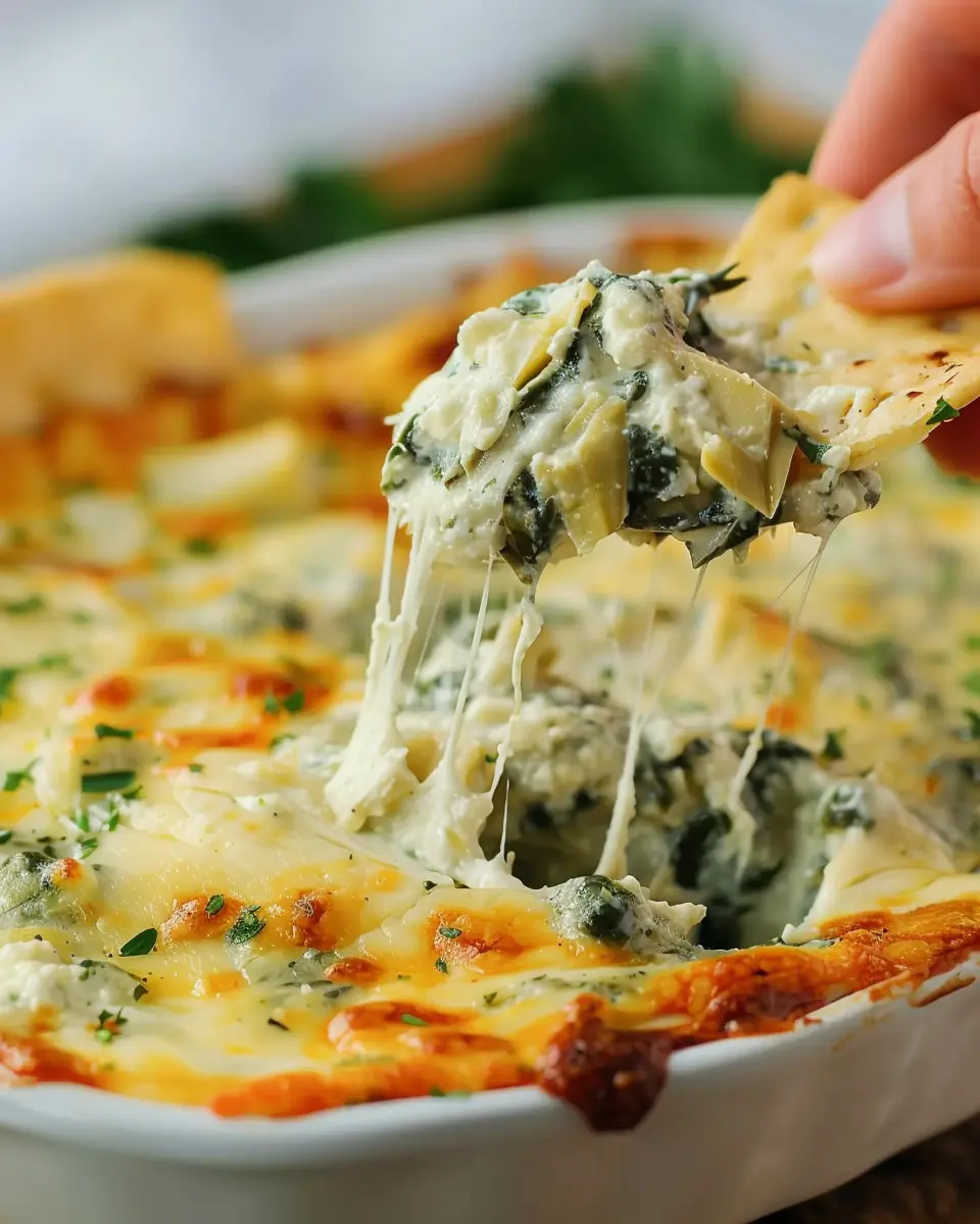 Quick and Easy Preparation: With just a handful of ingredients—fresh spinach, artichoke hearts, cream cheese, and mozzarella—prepping this dip can take less than 15 minutes. A busy weeknight? No problem. Just gather your ingredients, mix them up, and let your oven do the work!