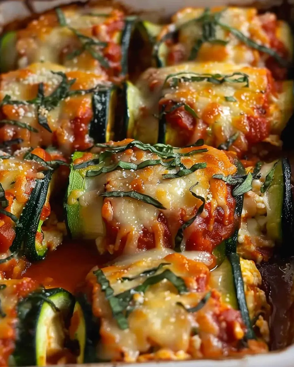 For an extra flavor boost, you can spread a layer of marinara sauce at the bottom of your baking dish before adding the rolled zucchini.