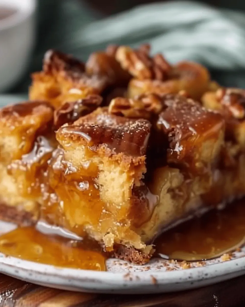 Once your whiskey caramel bread pudding is out of the oven and has cooled for a few minutes, cut it into squares. Drizzle generously with your homemade caramel sauce, and voilà! You have a dessert that’s not only tasty but also visually appealing.