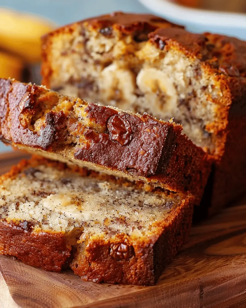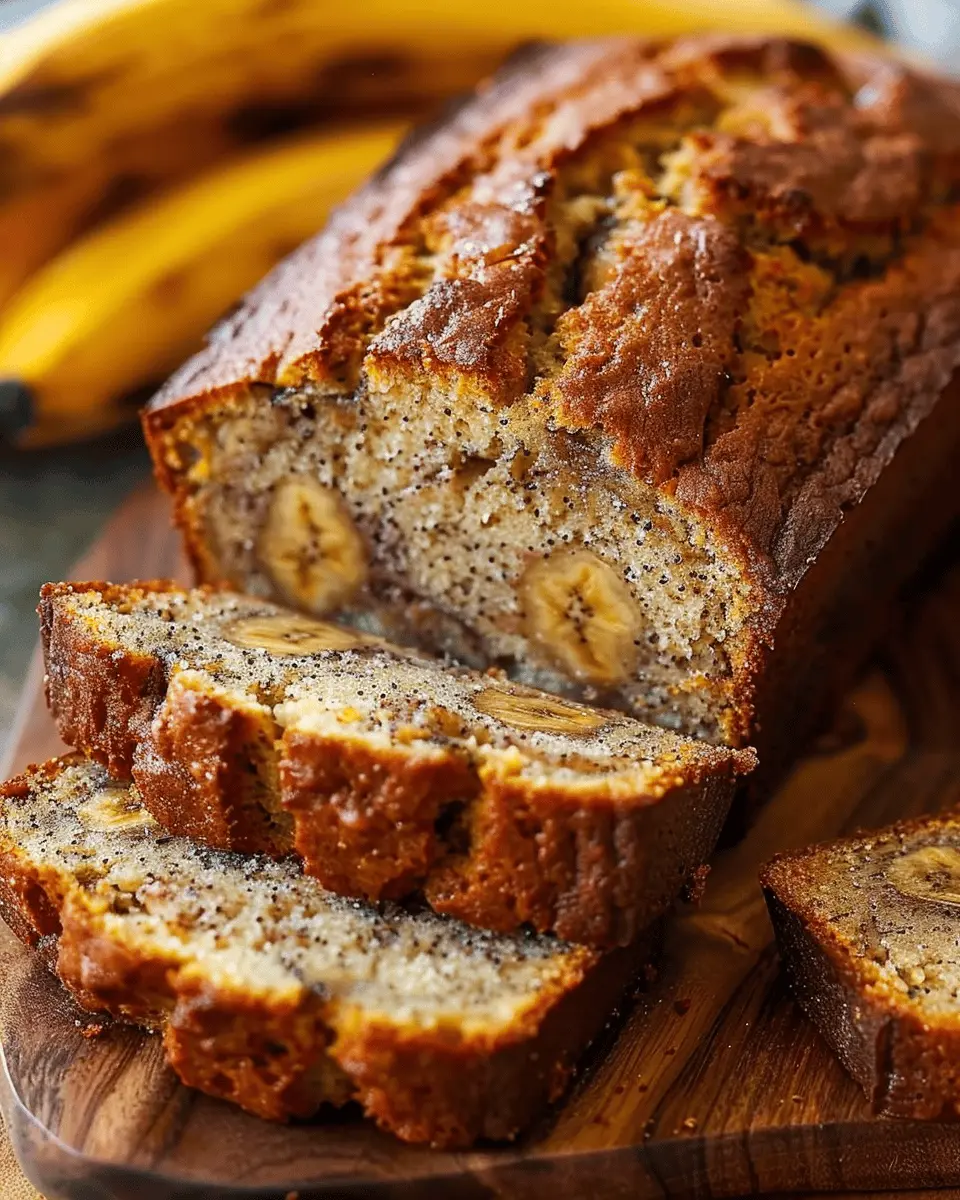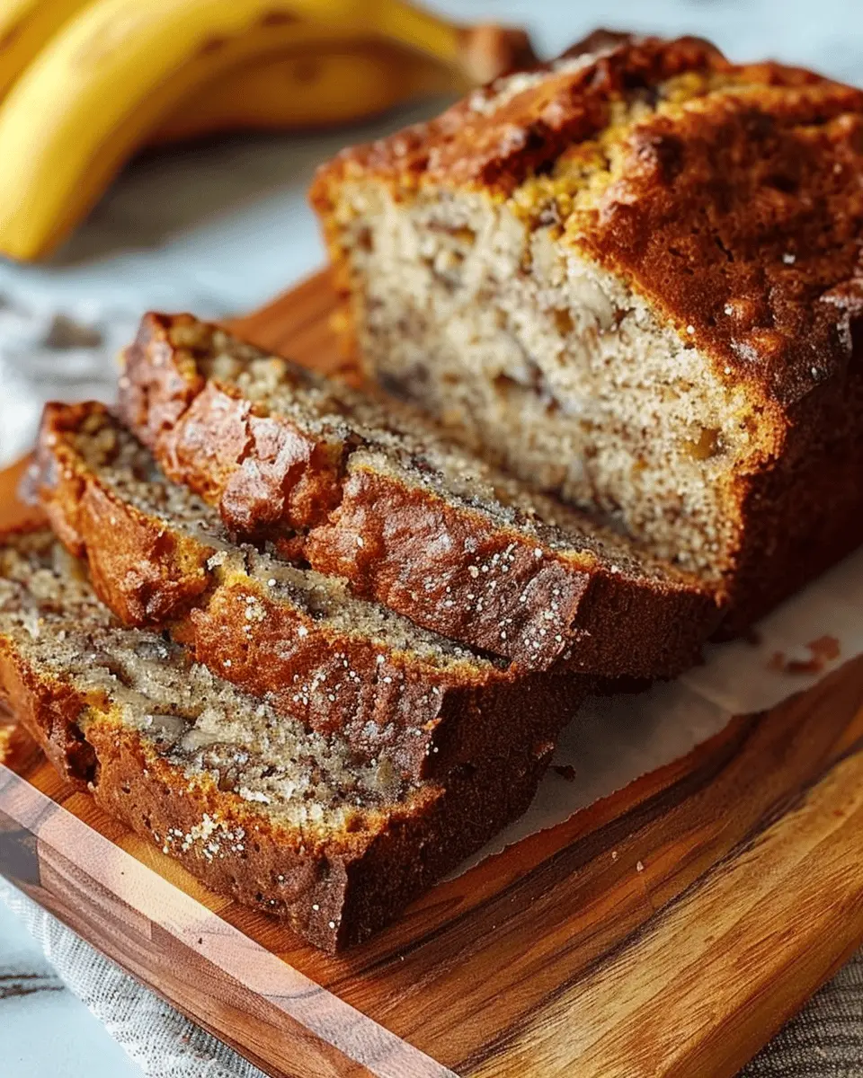 This banana bread recipe is moist, easy to make, and simply delicious, perfect for using up ripe bananas.